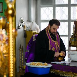 По прочтению отрывка из Евангелия было совершено помазание и раздача освященного хлеба.