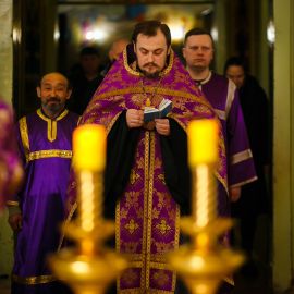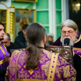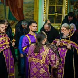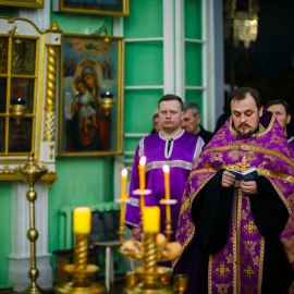 Сегодня вечернее в Неделю 2-ю Свт. Григо́рия Паламы, архиепископа Фессалонитского Богослужение в соборе святых апостолов Петра и Павла настоятель собора протоиерей Сергий Снопков; ему сослужили иерей Антоний Кудрицкий, иерей Роман Пудов, иерей Сергий Сафонеев и диакон Павел Орлов. Песнопения Литургии исполнил малый хор собора под управлением регента Жигульской Е.