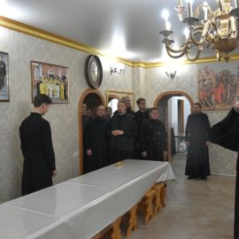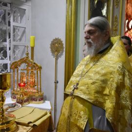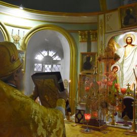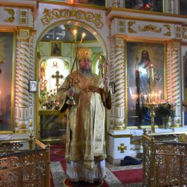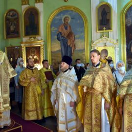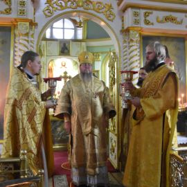 Владыке сослужили настоятель собора протоиерей Сергий Снопков и духовенство Петро-Павловского и Кафедрального Вознесенского соборов. Песнопения Литургии исполнил хор собора под управлением регента Прохоровой О. Н. и Жигульского К. Н.
