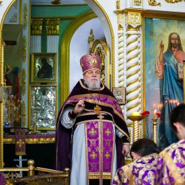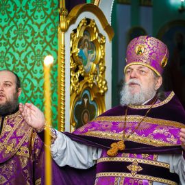 По прочтении Евангельского зачала, на сугубой ектеньи были вознесены молитвословия о даровании Единства Церкви Христовой и об умирении церковных раздоров. По сугубой ектенье были прочитаны молитвы «О ниспослании мира землях Украинской и Белоруской», о исцелении страждущих от пагубных зависимостей:алкоголизма,наркомании и лудомании.Так же была прочитана особая молитва об избавлении Казахстана от угрозы эпидемии.