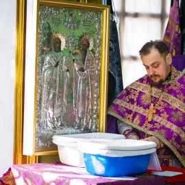По прочтении Евангельского зачала, на сугубой ектеньи были вознесены молитвословия о даровании Единства Церкви Христовой и об умирении церковных раздоров. По сугубой ектенье были прочитаны молитвы «О ниспослании мира землях Украинской и Белоруской», о исцелении страждущих от пагубных зависимостей:алкоголизма,наркомании и лудомании.Так же была прочитана особая молитва об избавлении Казахстана от угрозы эпидемии.