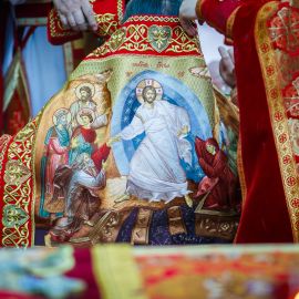 Перевод: Спаситель и Избавитель мой от гроба, как Бог воскресил из оков на земле рожденных, и врата ада сокрушил, и как Владыка воскрес на третий день.