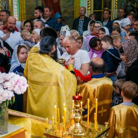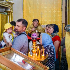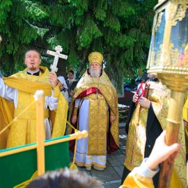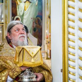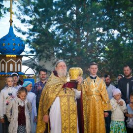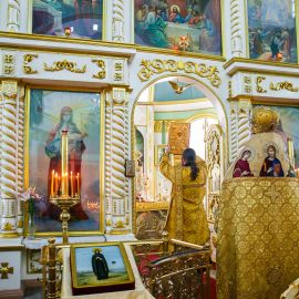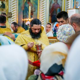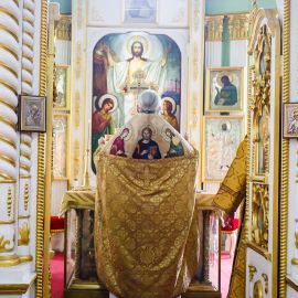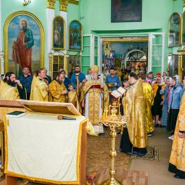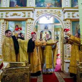 По прочтении Евангельского зачала, на сугубой ектеньи были вознесены молитвословия о даровании Единства Церкви Христовой и об умирении церковных раздоров. По сугубой ектенье были прочитаны молитвы «О ниспослании мира землях Украинской и Белоруской», о исцелении страждущих от пагубных зависимостей:алкоголизма,наркомании и лудомании.Так же была прочитана особая молитва об избавлении Казахстана от угрозы эпидемии.