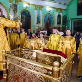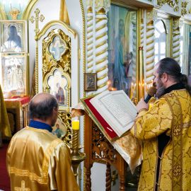Во время Богослужения были прочитаны следующие отрывки из Святого Писания: Лит. Евр.11:33 - 12:2 (зач. 330). Мф.10:32-33, 37-38, 19:27-30 (зач. 38).