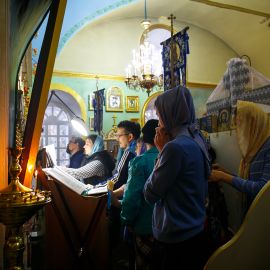 Во время Богослужения были прочитаны следующие отрывки из Святого Писания: - Лит. - Богородицы: Евр.9:1-7 (зач. 320). Лк.10:38-42, 11:27-28 (зач. 54).