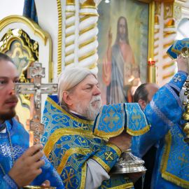 В Петро-Павловском праздничное Богослужение возглавил настоятель собора протоиерей Сергий Снопков. Ему сослужили иерей Роман Пудов, иерей Антоний Кудрицкий, иерей Сергий Сафонеев и диакон Павел Орлов. Песнопения Литургии исполнил малый хор собора под управлением регента Богдановой Марины.