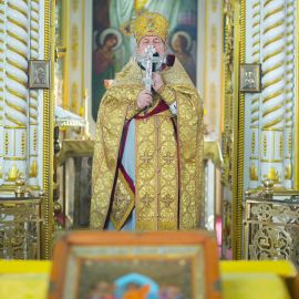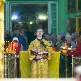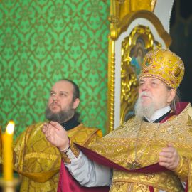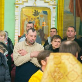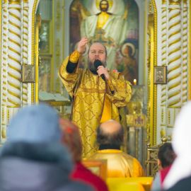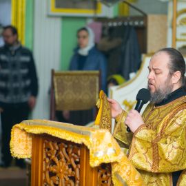 По прочтении Евангельского зачала, на сугубой ектеньи были вознесены молитвословия о даровании Единства Церкви Христовой и об умирении церковных раздоров. По сугубой ектенье были прочитаны молитвы об исцелении страждущих от пагубных зависимостей: алкоголизма,наркомании и лудомании. В завершение богослужения протоиерей Сергий Снопков обратился к молящимся со словом проповеди.