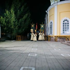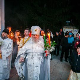Духовенство в праздничном облачении, певчие, прихожане с зажженными свечами под пение стихиры «Воскресение Твое, Христе Спасе, Ангели поют на небесех, и нас на земли сподоби чистым сердцем Тебе славити» и радостный звон колоколов обошли величественный собор Петра и Павла, шествуя как бы навстречу грядущему Спасителю, как некогда жены-мироносицы.