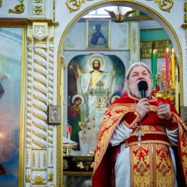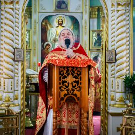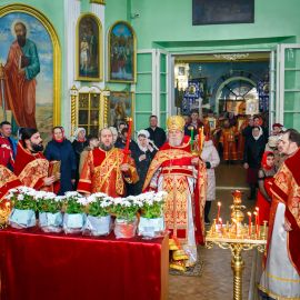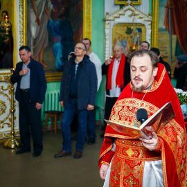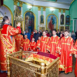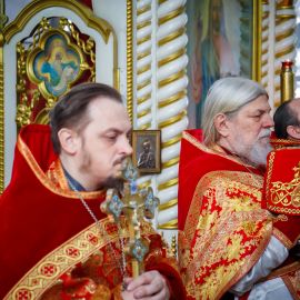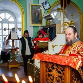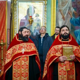 По прочтении Евангельского зачала, на сугубой ектеньи были вознесены молитвословия о даровании Единства Церкви Христовой и об умирении церковных раздоров. По сугубой ектенье были прочитаны молитвы об исцелении страждущих от пагубных зависимостей: алкоголизма,наркомании и лудомании. В завершении богослужения протоиерей Сергий Снопков обратился к молящимся со словом проповеди.