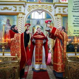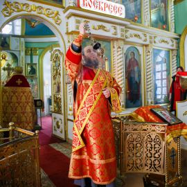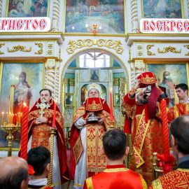 Литургия совершилась по уставу первого дня Пасхи. Были пропеты антифоны праздника Пасхи.