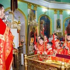 Во время Богослужения были прочитаны следующие отрывки из Святого Писания: Утр. – Мф. 28:16–20 (зач. 116). Лит. – Деян. 5:12–20 (зач. 14). Ин. 20:19–31 (зач. 65).