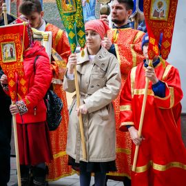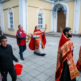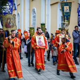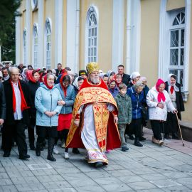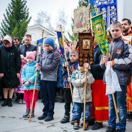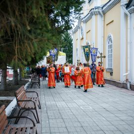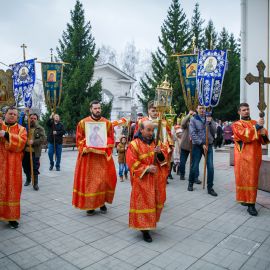 По окончании Литургии состоялся Пасхальный Крестный ход вокруг Собора.