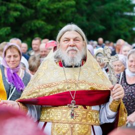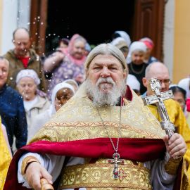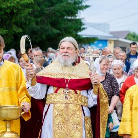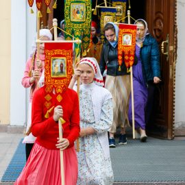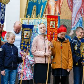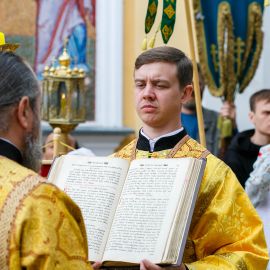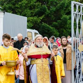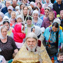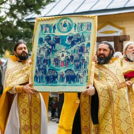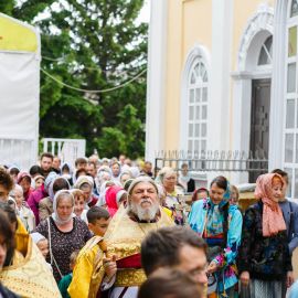 По окончании Божественной Литургии и славления Всем Святым в земле Русской просиявших, был совершен Крестный ход вокруг Собора.