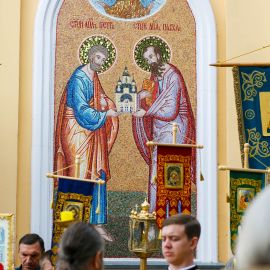 Сегодня 18.06.2023, в Неделю 2-ю по Пятидесятнице, в Неделю всех святых в земле Русской просиявших Божественную Литургию в соборе святых апостолов Петра и Павла возглавил настоятель собора протоиерей Сергий Снопков, ему сослужили иерей Сергий Осинцев, иерей Сергий Сафонеев и диакон Павел Орлов. Песнопения Литургии исполнили большой и малый хоры собора под управлением регентов Прохоровой О.Н. и Богдановой М.А.