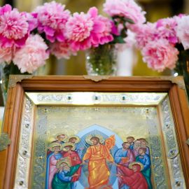 Воскрес Ты из гроба, всесильный Спаситель, и ад, увидев это чудо ужасался, и мертвые восставали. И все творение, видя это, радуется с Тобой, и Адам веселится, и мир Тебя, Спаситель мой, прославляет непрестанно.