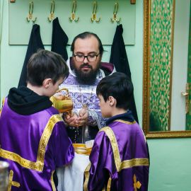 Сегодня 31.03.2024, Неделя 2-я Великого поста, Святителя Григория Паламы, архиепископа Фессалонитского. Божественную Литургию в соборе святых апостолов Петра и Павла возглавил настоятель собора протоиерей Сергий Снопков, ему сослужили иерей Сергий Сафонеев, иерей Сергий Осинцев, иерей Максим Черненко и диакон Павел Орлов. Песнопения Литургии исполнили большой и малый хоры собора под управлением регентов Прохоровой О.Н. и Богдановой М.В.