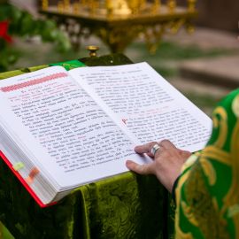 Во время Богослужения были прочитаны следующие отрывки из Святого Писания: Утр. – Ин.20:19–23 (зач. 65). Лит. – Деян.2:1–11 (зач. 3). Ин.7:37–52,8:12 (зач. 27).