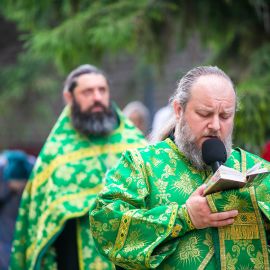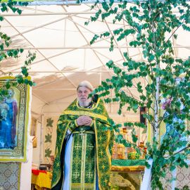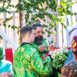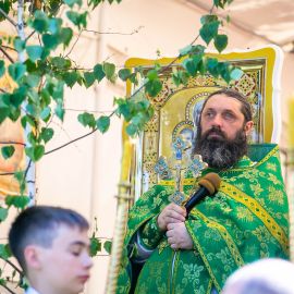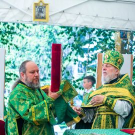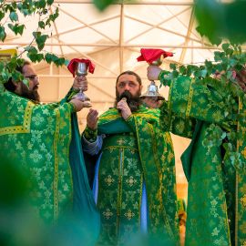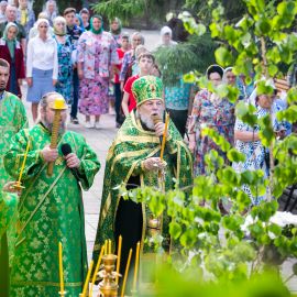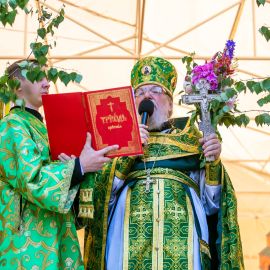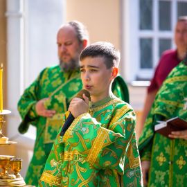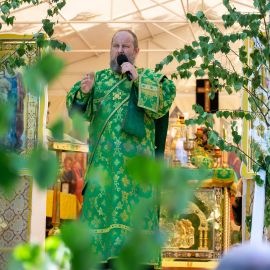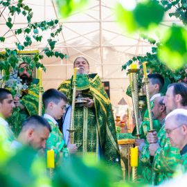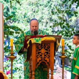 В День Святой Троицы впервые после Пасхи читается молитва «Царю Небесный». В этот великий день — день рождения Церкви, после Литургии служится вечерня, во время которой читаются коленопреклоненные молитвы — удивительные по своей глубине и красоте. Великую Вечерню с чтением коленопреклонных молитв святителя Василия Великого возглавил настоятель Собора.