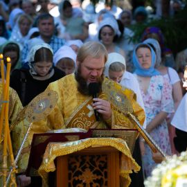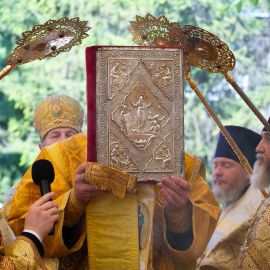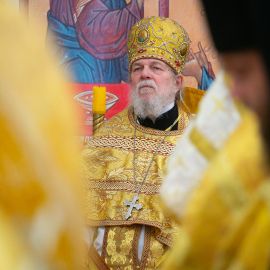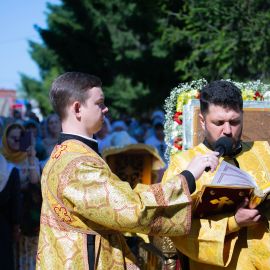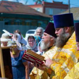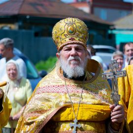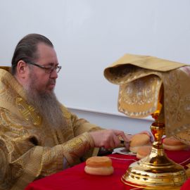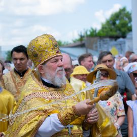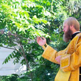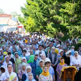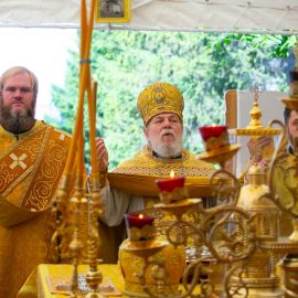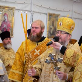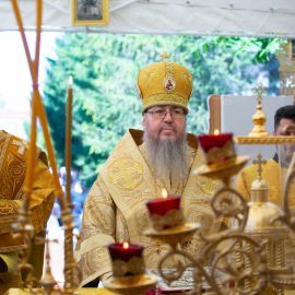 После отпуста Литургии Высокопреосвященнейший Владимир, архиепископ Петропавловский и Булаевский, обратился к молящимся со словами проповеди и поздравил всех присутствующих с Престольным праздником.