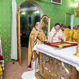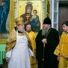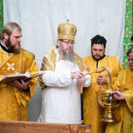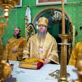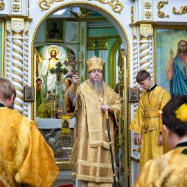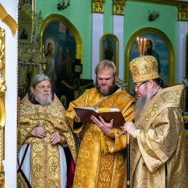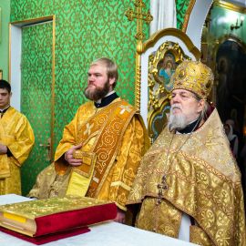 В завершении богослужения архиепископ Петропавловский и Булаевский Владимир обратился к собравшимся с архипастырским словом, в котором поблагодарил всех за совместную молитву, поздравил настоятеля и прихожан со знаменательным событием в жизни прихода.