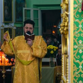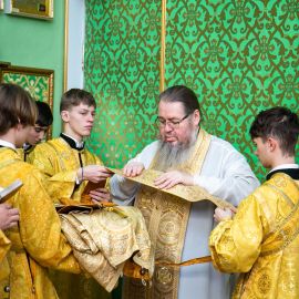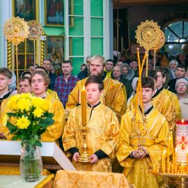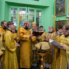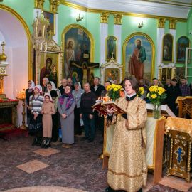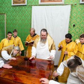 По прочтении Евангельского зачала, на сугубой ектении были вознесены молитвословия о даровании Единства Церкви Христовой и об умирении церковных раздоров. По сугубой ектении были прочитаны молитвы об исцелении страждущих от пагубных зависимостей: алкоголизма, наркомании и лудомании.