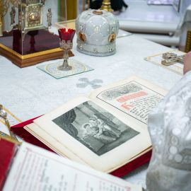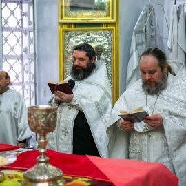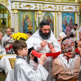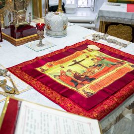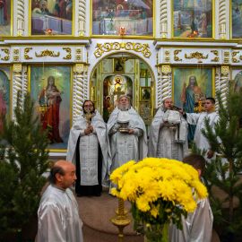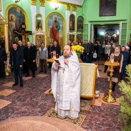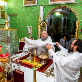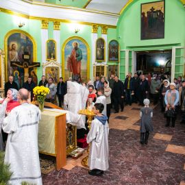 По прочтении Евангельского зачала, на сугубой ектении были вознесены молитвословия о даровании Единства Церкви Христовой и об умирении церковных раздоров. По сугубой ектении были прочитаны молитвы об исцелении страждущих от пагубных зависимостей: алкоголизма, наркомании и лудомании.