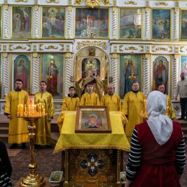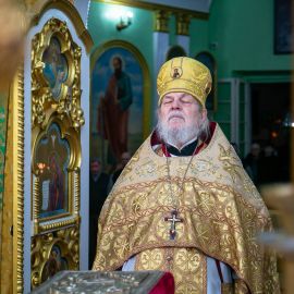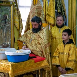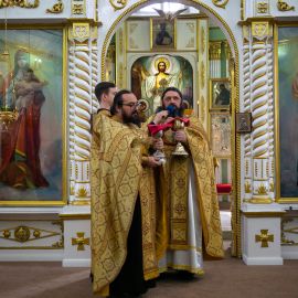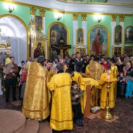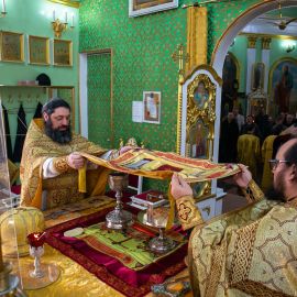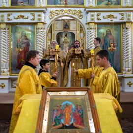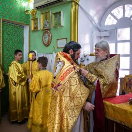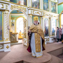 Божественную Литургию в соборе святых апостолов Петра и Павла возглавил настоятель собора протоиерей Сергий Снопков, ему сослужили иерей Сергий Сафонеев, иерей Максим Черненко и иерей Павел Орлов. Песнопения Литургии исполнили большой и малый хоры собора под управлением регентов Прохоровой О.Н. и Богдановой М.В.