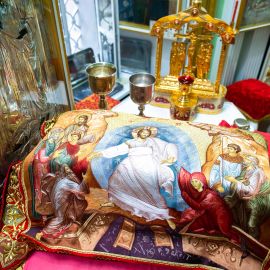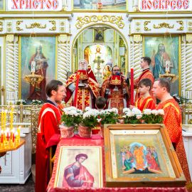 Во время Богослужения были прочитаны следующие отрывки из Святого Писания: Утр. – Мф. 28:16–20 (зач. 116). Лит. – Деян. 5:12–20 (зач. 14). Ин. 20:19–31 (зач. 65).