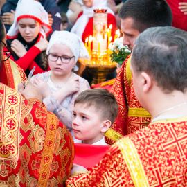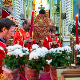 Литургия совершилась по уставу первого дня Пасхи. Были пропеты антифоны праздника Пасхи.