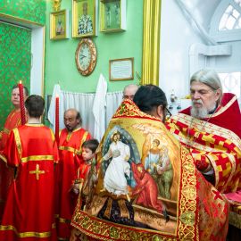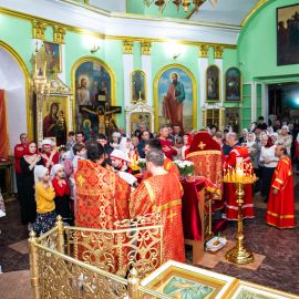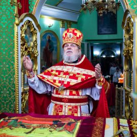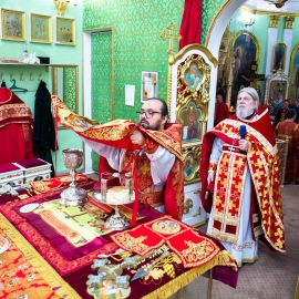 По прочтении Евангельского зачала, на сугубой ектеньи были вознесены молитвословия о даровании Единства Церкви Христовой и об умирении церковных раздоров. По сугубой ектенье были прочитаны молитвы об исцелении страждущих от пагубных зависимостей: алкоголизма,наркомании и лудомании. В завершении богослужения протоиерей Сергий Снопков обратился к молящимся со словом проповеди.