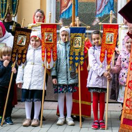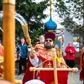По окончании Литургии состоялся Пасхальный Крестный ход вокруг Собора.