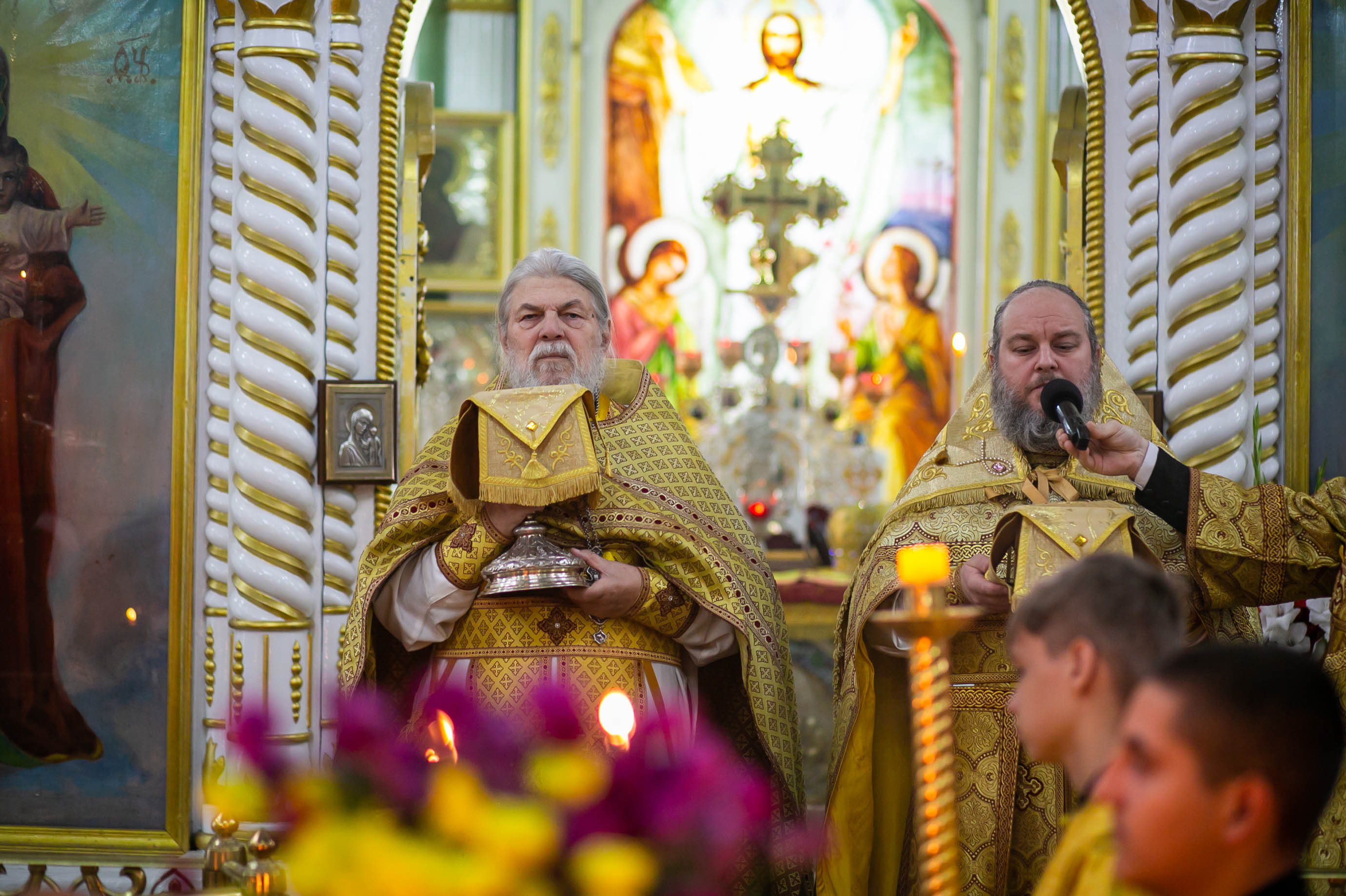 В завершении богослужения настоятель Собора протоиерей Сергий Снопков обратился к молящимся со словами проповеди.