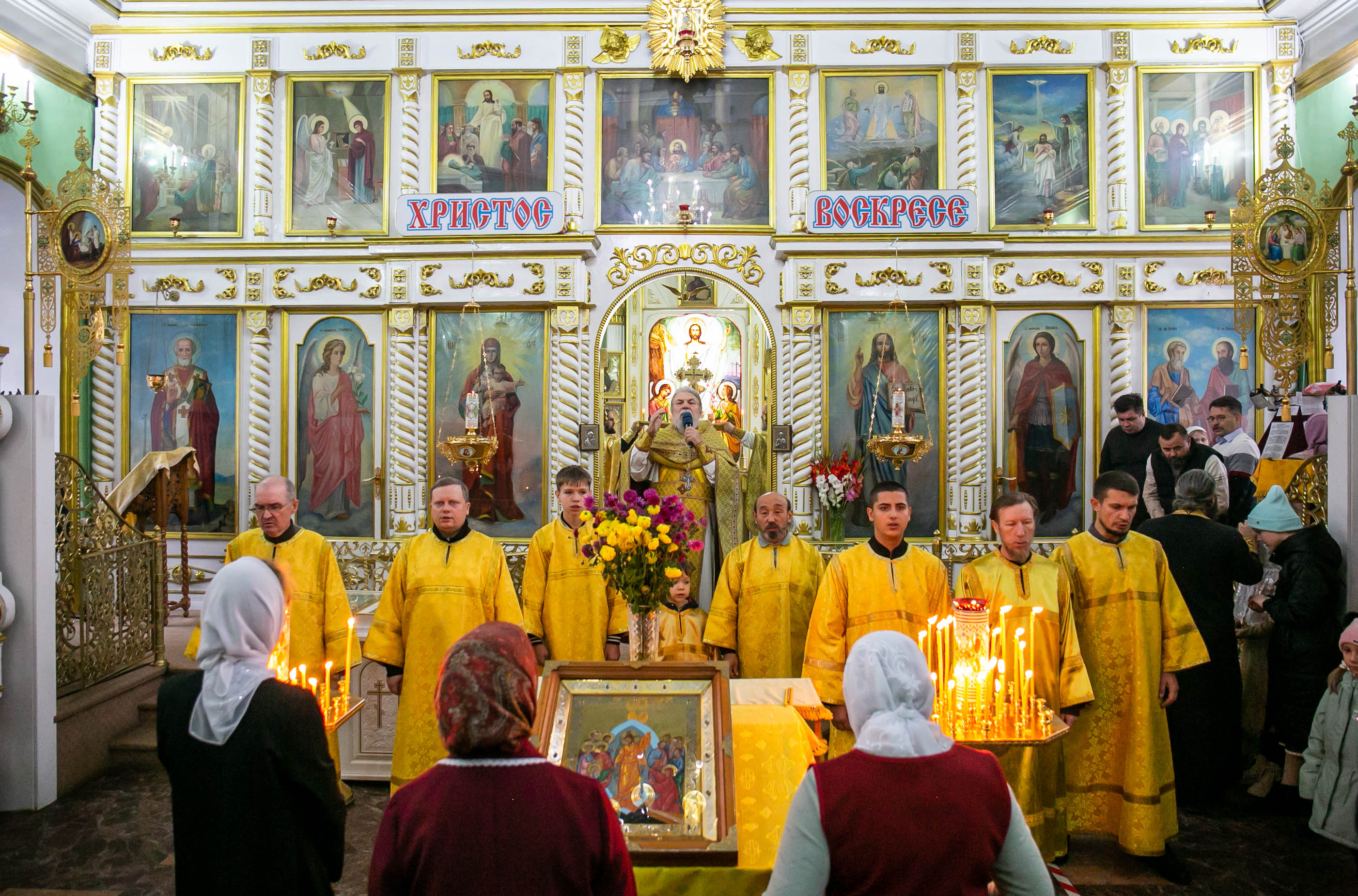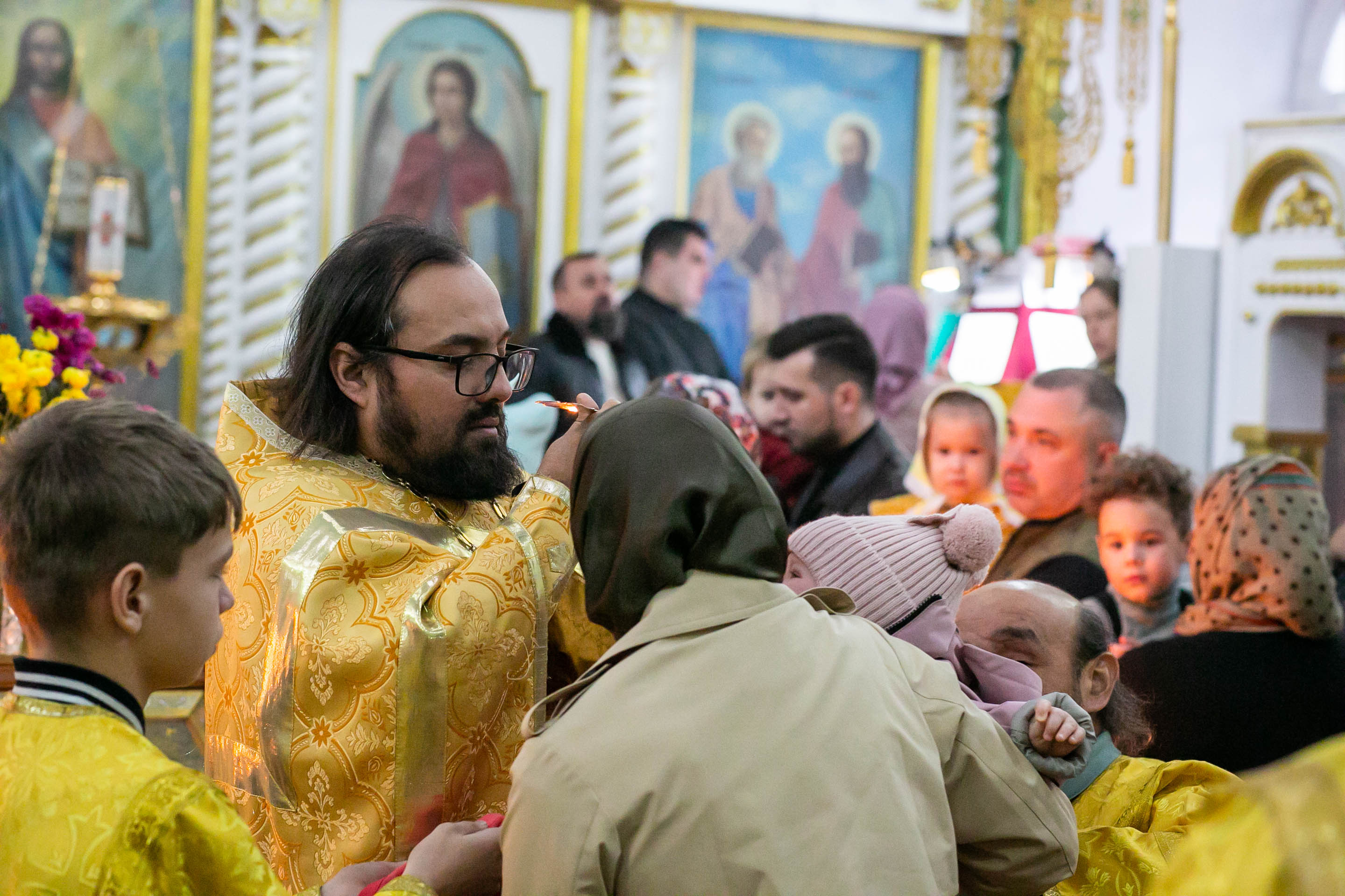 По прочтении Евангельского зачала, на сугубой ектении были вознесены молитвословия о даровании Единства Церкви Христовой и об умирении церковных раздоров. По сугубой ектении были прочитаны молитвы об исцелении страждущих от пагубных зависимостей: алкоголизма, наркомании и лудомании.