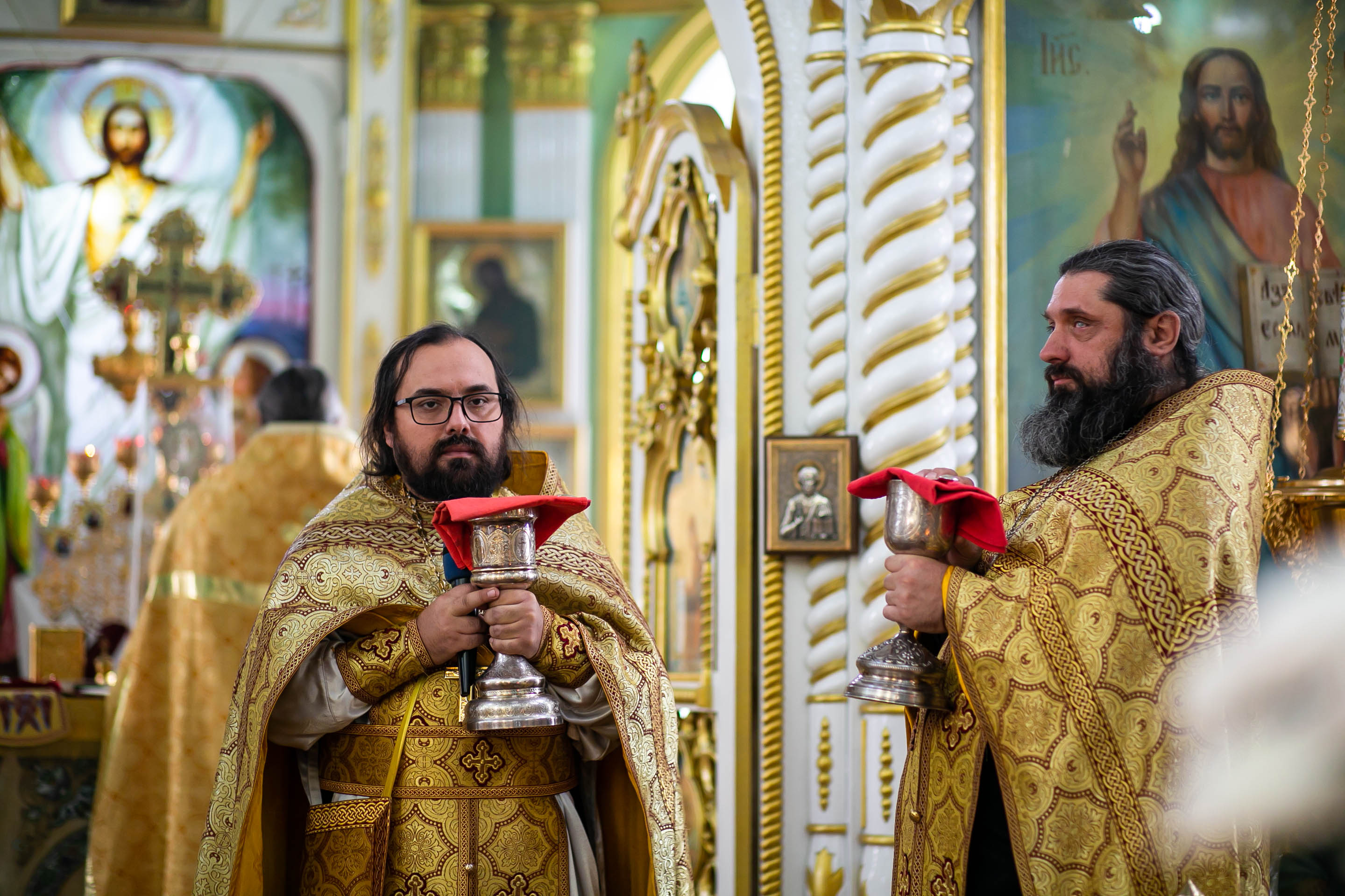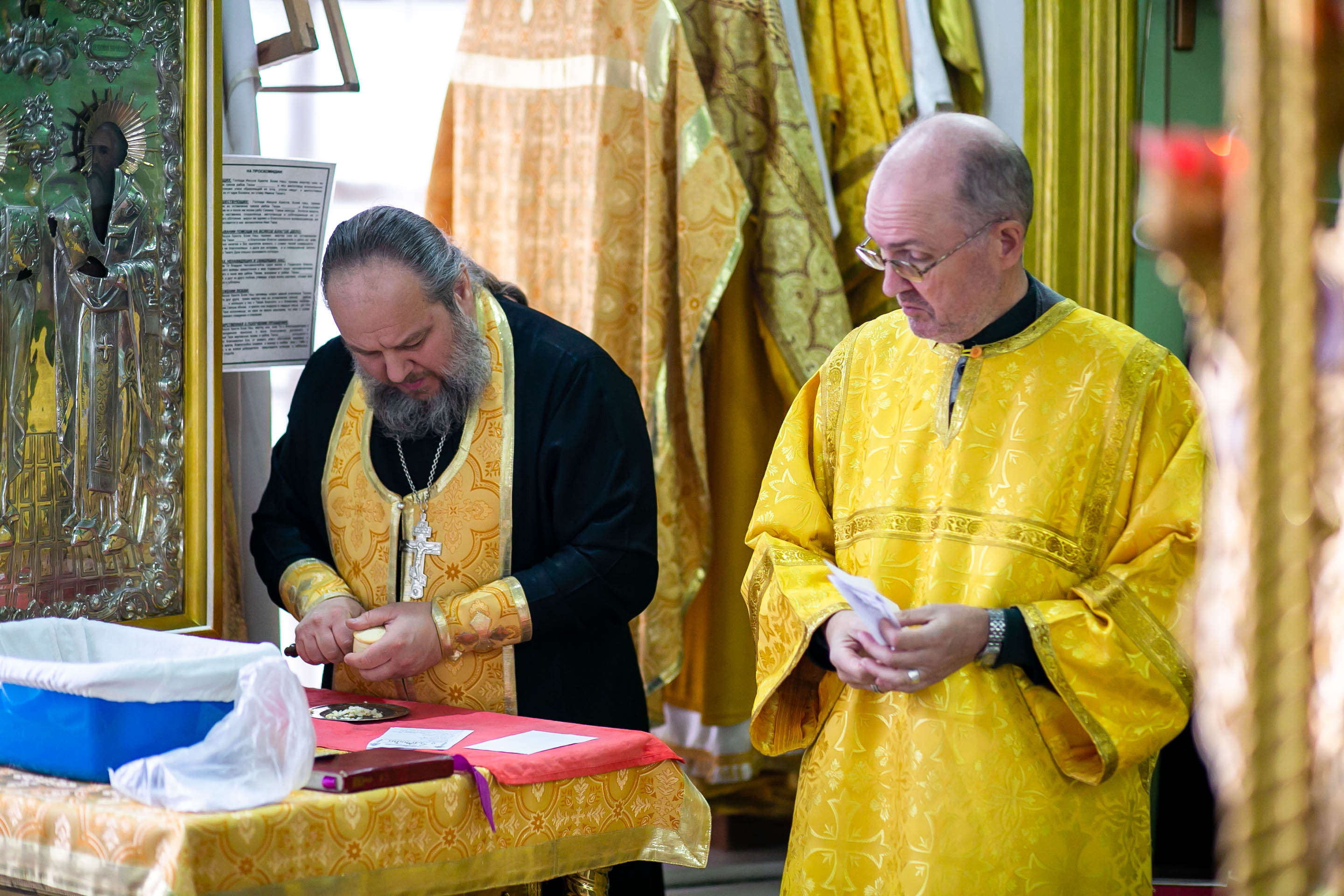 По прочтении Евангельского зачала, на сугубой ектении были вознесены молитвословия о даровании Единства Церкви Христовой и об умирении церковных раздоров. По сугубой ектении были прочитаны молитвы об исцелении страждущих от пагубных зависимостей: алкоголизма, наркомании и лудомании.