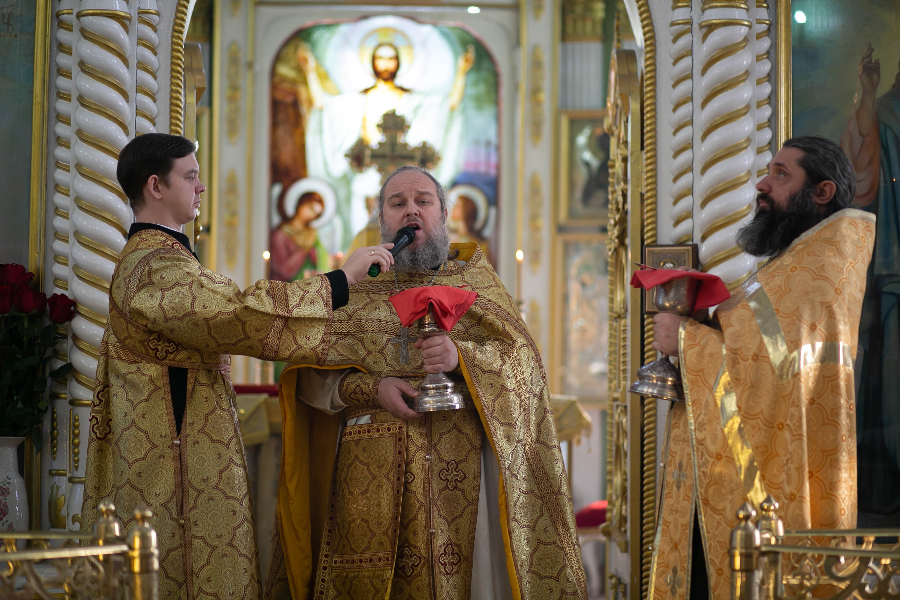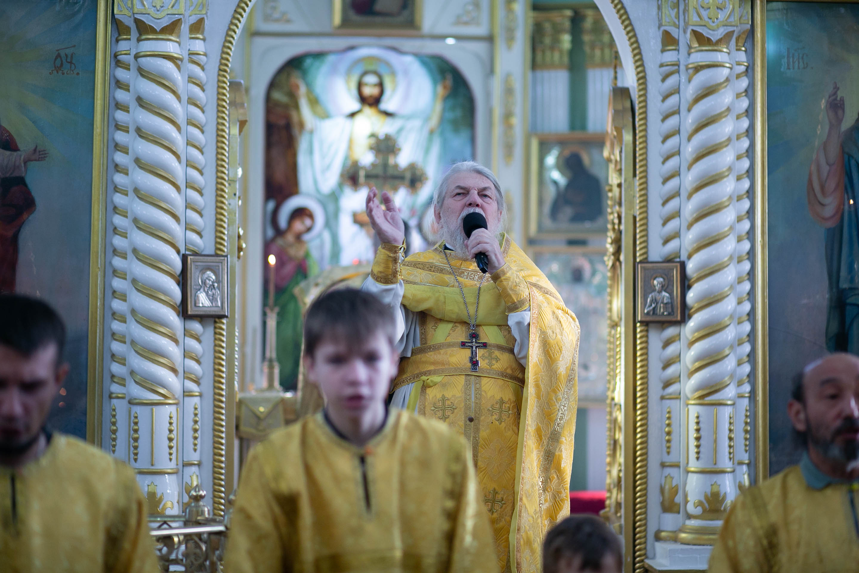 В завершении богослужения настоятель Собора протоиерей Сергий Снопков обратился к молящимся со словами проповеди.