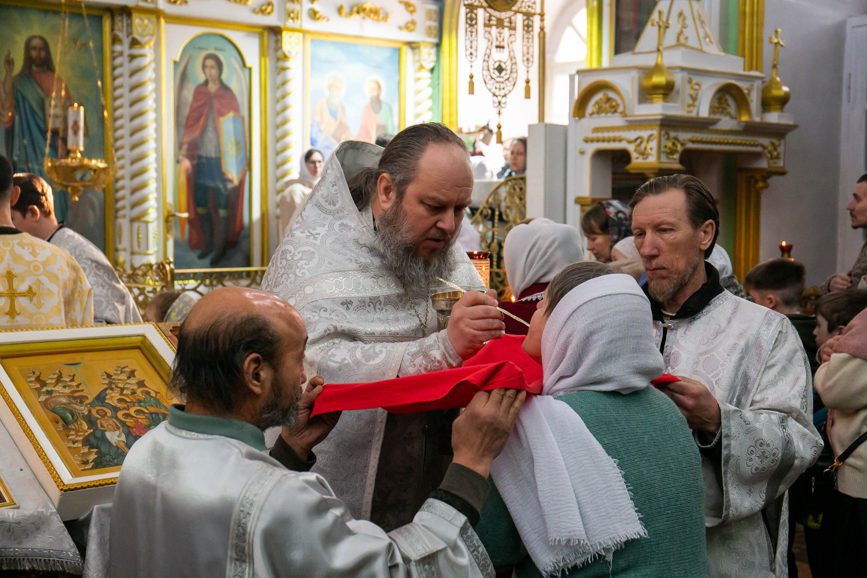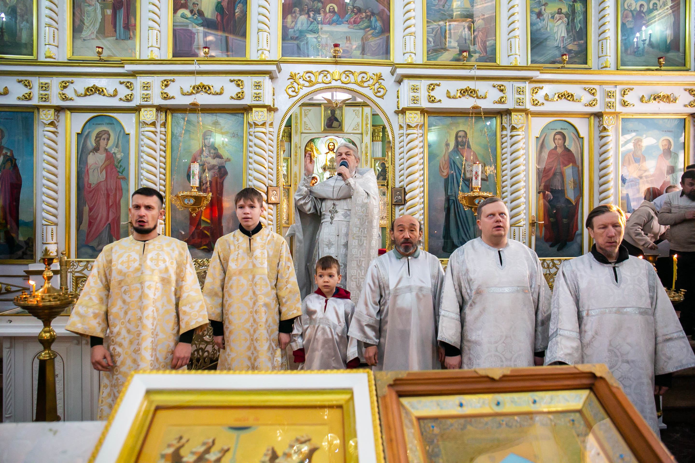 По прочтении Евангельского зачала, на сугубой ектении были вознесены молитвословия о даровании Единства Церкви Христовой и об умирении церковных раздоров. По сугубой ектении были прочитаны молитвы об исцелении страждущих от пагубных зависимостей: алкоголизма, наркомании и лудомании. По окончании богослужения настоятель Собора Сергий Снопков обратился к прихожанам со словами проповеди.