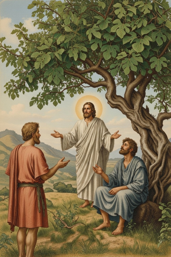 Что именно было с Нафанаилом под смоковницей, сокрыто от нас, но по всему видно, что здесь заключена какая-то тайна, о которой мог знать только Бог. И это откровение настолько поразило Нафанаила, что все его сомнения мгновенно рассеялись: он понял, что перед ним не просто человек, а Некто, одаренный Божественным всеведением.