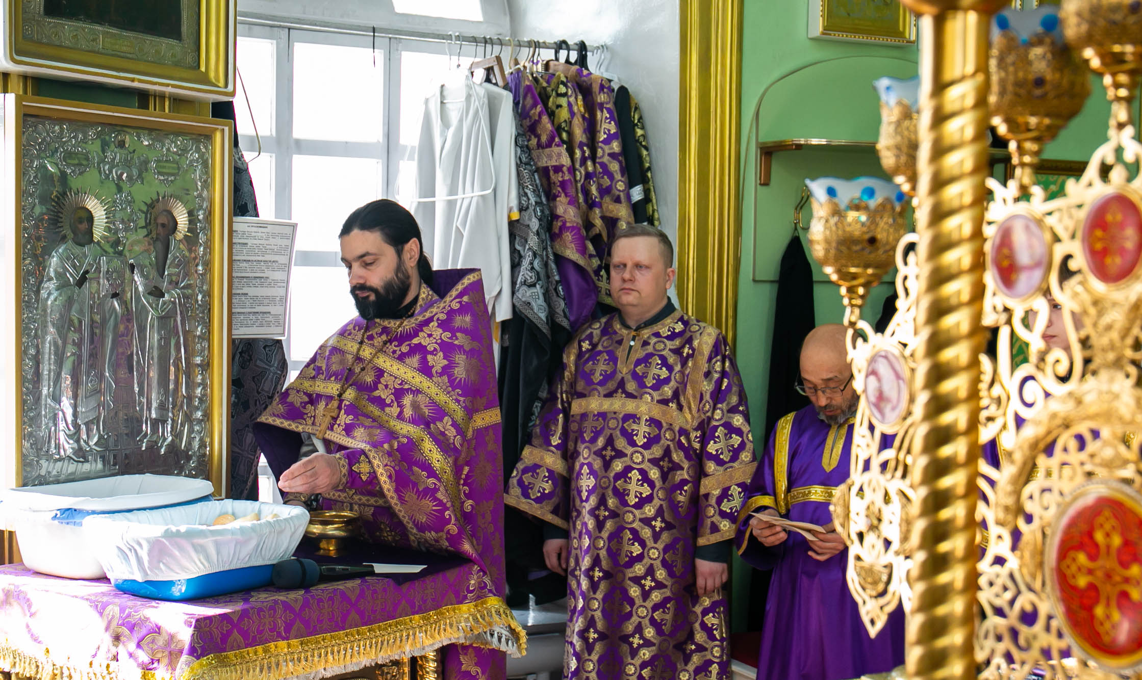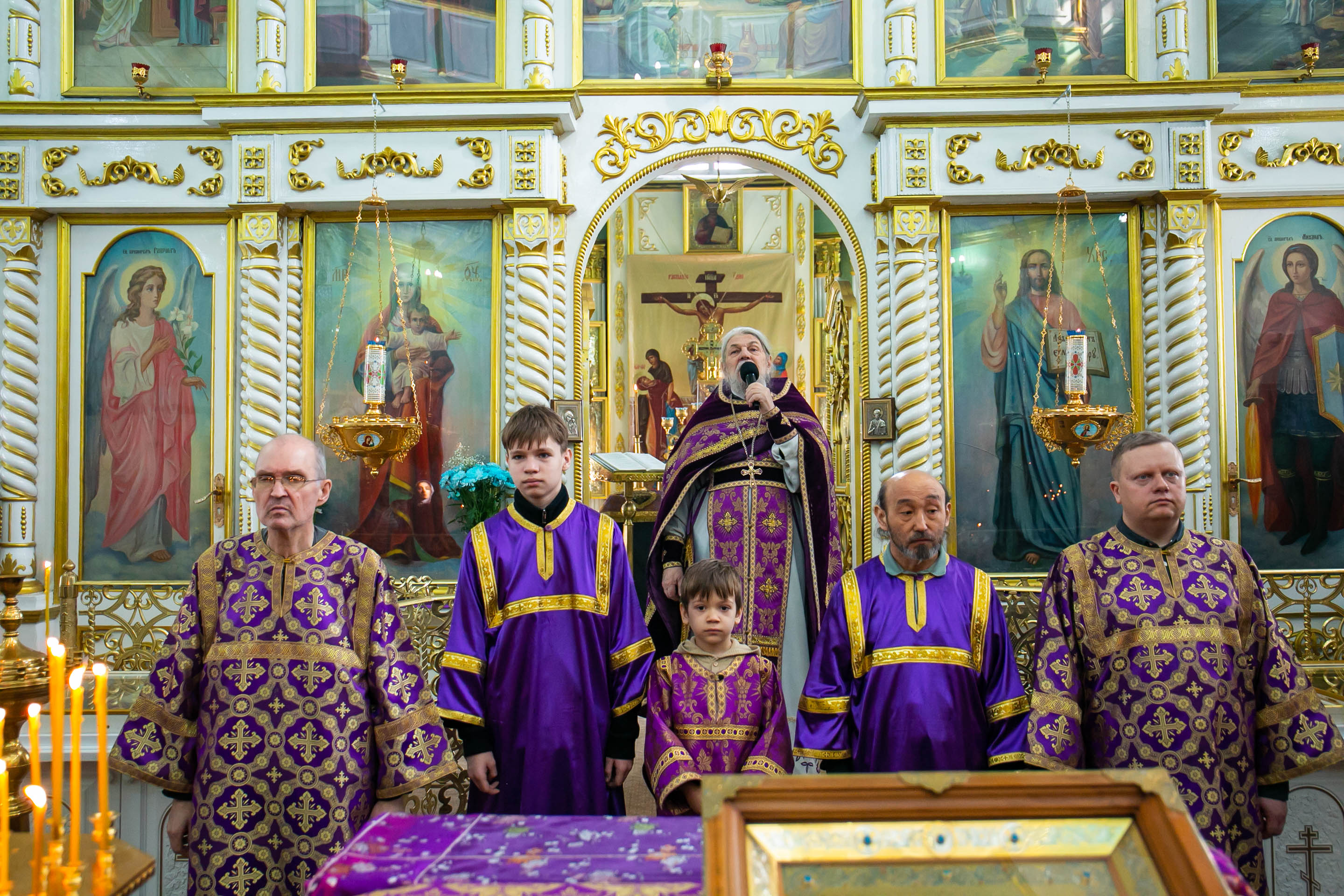 Божественную Литургию в соборе святых апостолов Петра и Павла возглавил настоятель собора протоиерей Сергий Снопков, ему сослужили иерей Сергий Осинцев, иерей Сергий Сафонеев и иерей Павел Орлов. Песнопения Литургии исполнили большой и малый хоры собора под управлением регентов Прохоровой О.Н. и Богдановой М.В.