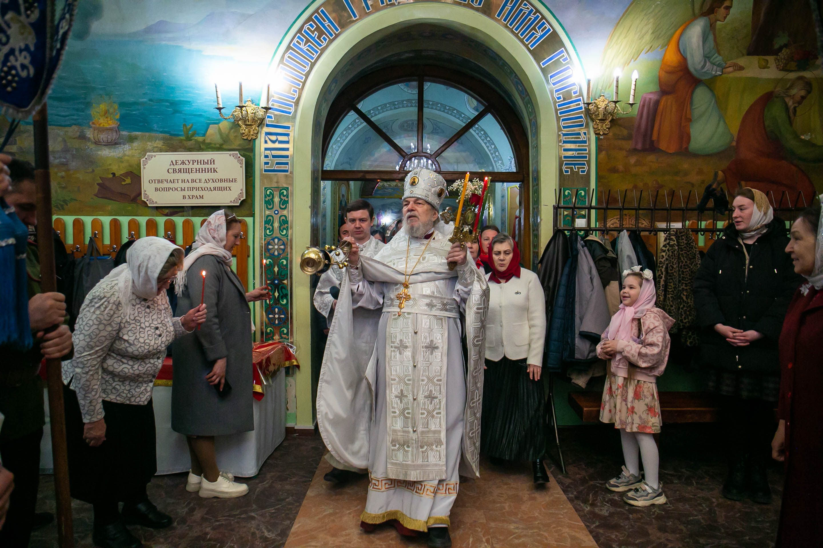 12 апреля 2026 года прихожане Собора святых апостолов Петра и Павла торжественно встретили Праздник праздников и Торжество из торжеств – Светлое Христово Воскресение, Пасху Божию спасительную. Пасхальное богослужение возглавил протоиерей Сергий Снопков. Ему сослужили иерей Сергий Сафонеев, иерей Павел Орлов. Песнопения Богослужения исполнили большой, малый и детский хор Собора под управлением регентов Прохоровой О.Н., Богдановой М.В и Витрук Е.С.