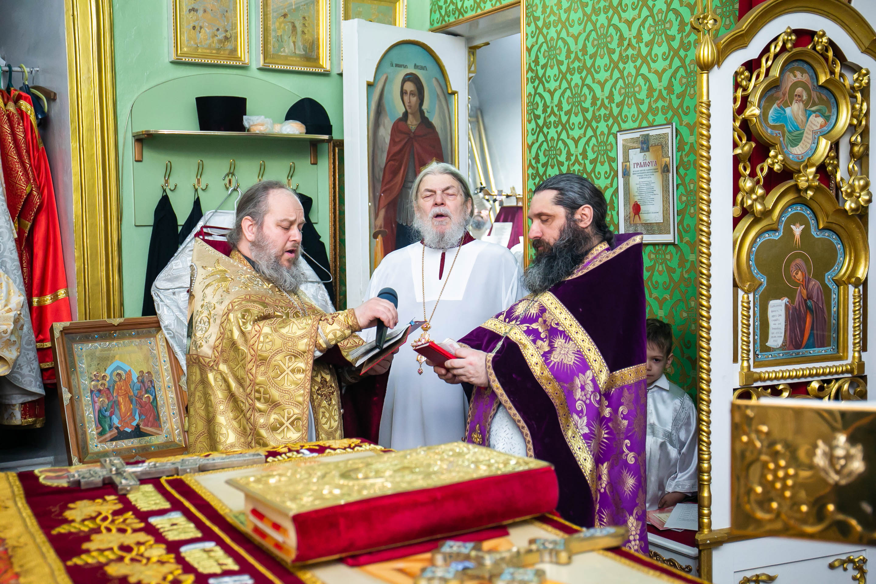 Было прочитано начало книги Деяний Апостольских (1 глава, стихи с 1 по 8) и евангельское зачало о Божественной природе Господа Иисуса Христа, в Воскресении из мертвых явившем миру Свою Божественную власть (Евангелие от Иоанна: 1 глава, 13-17 стихи).
