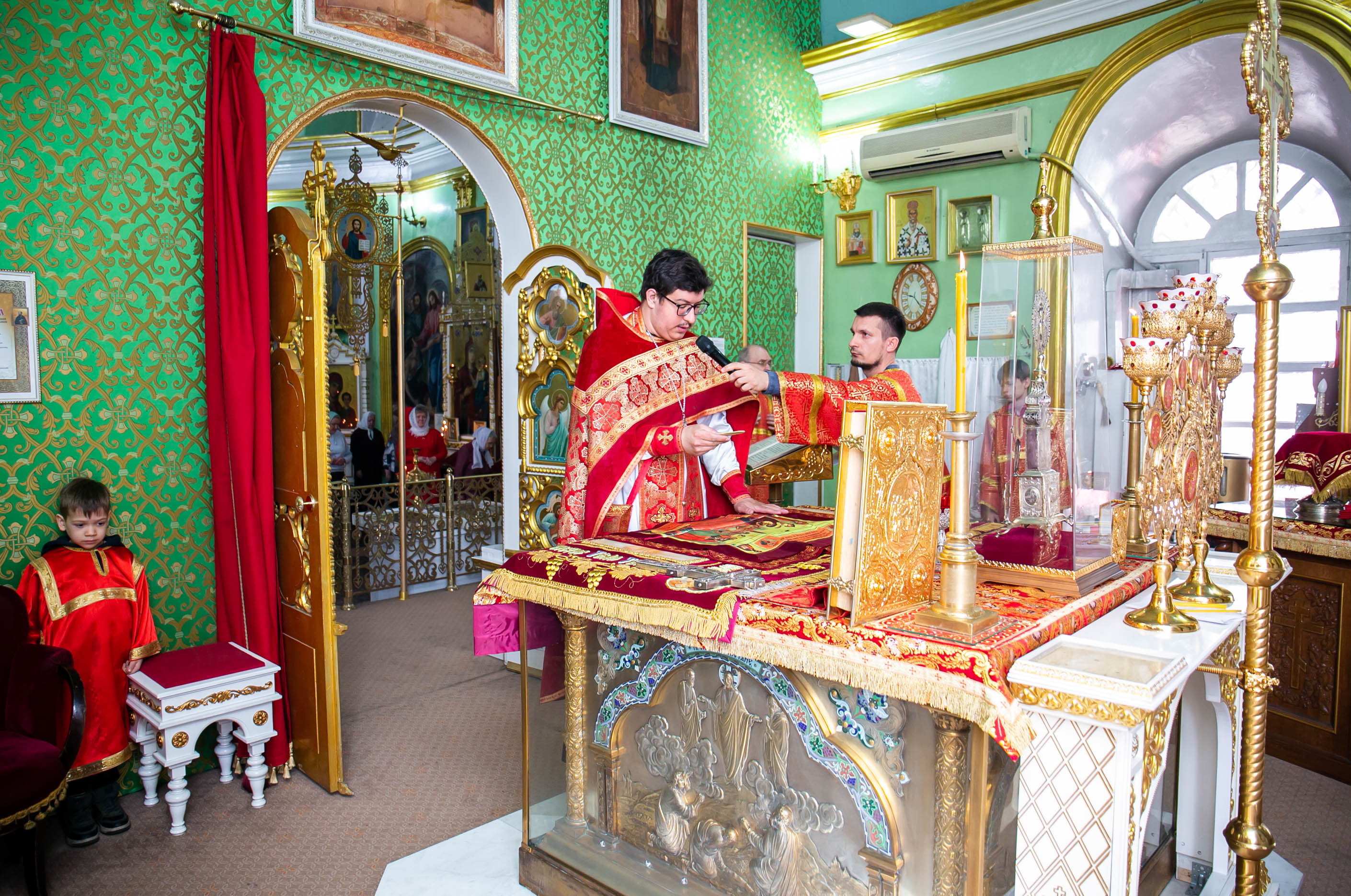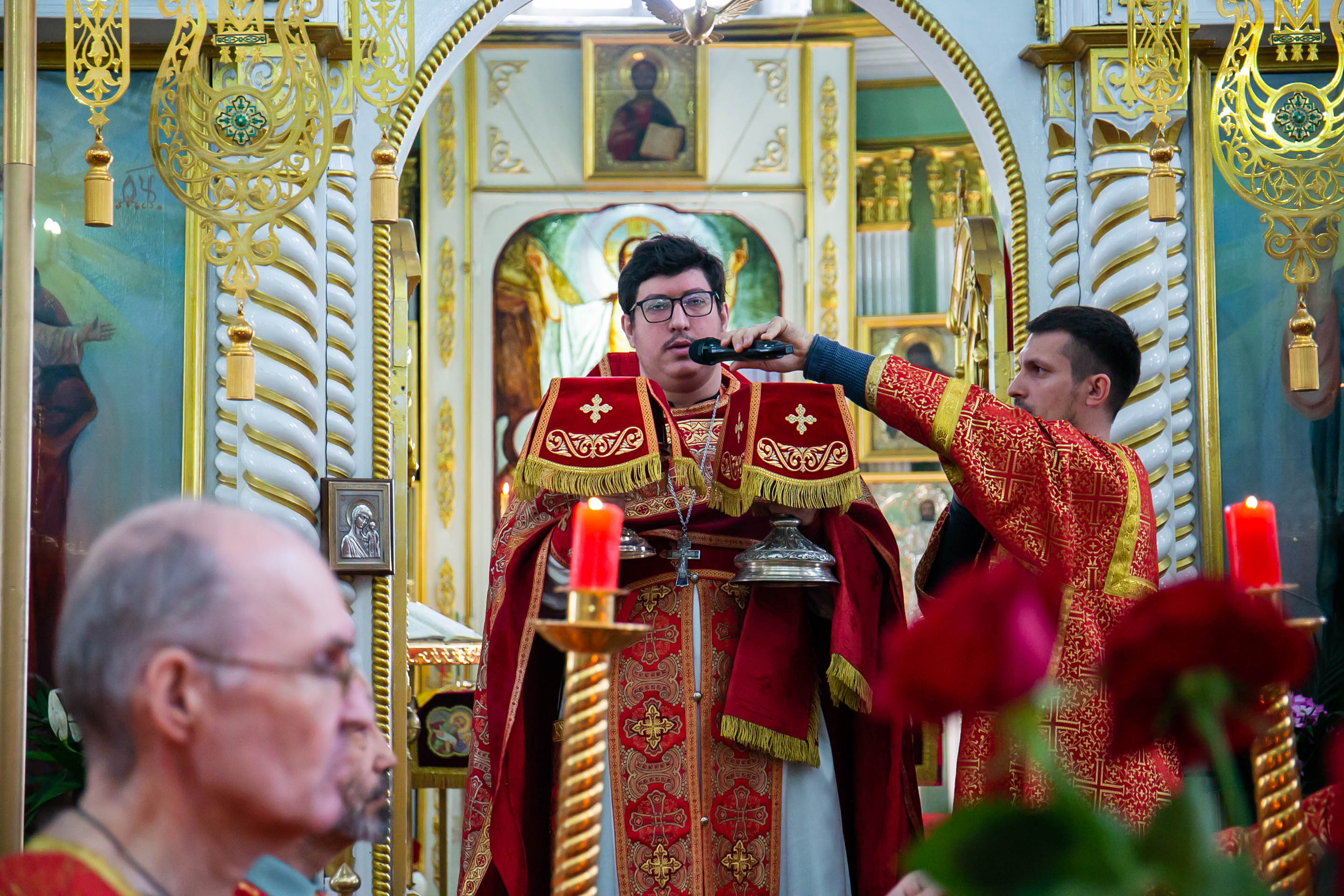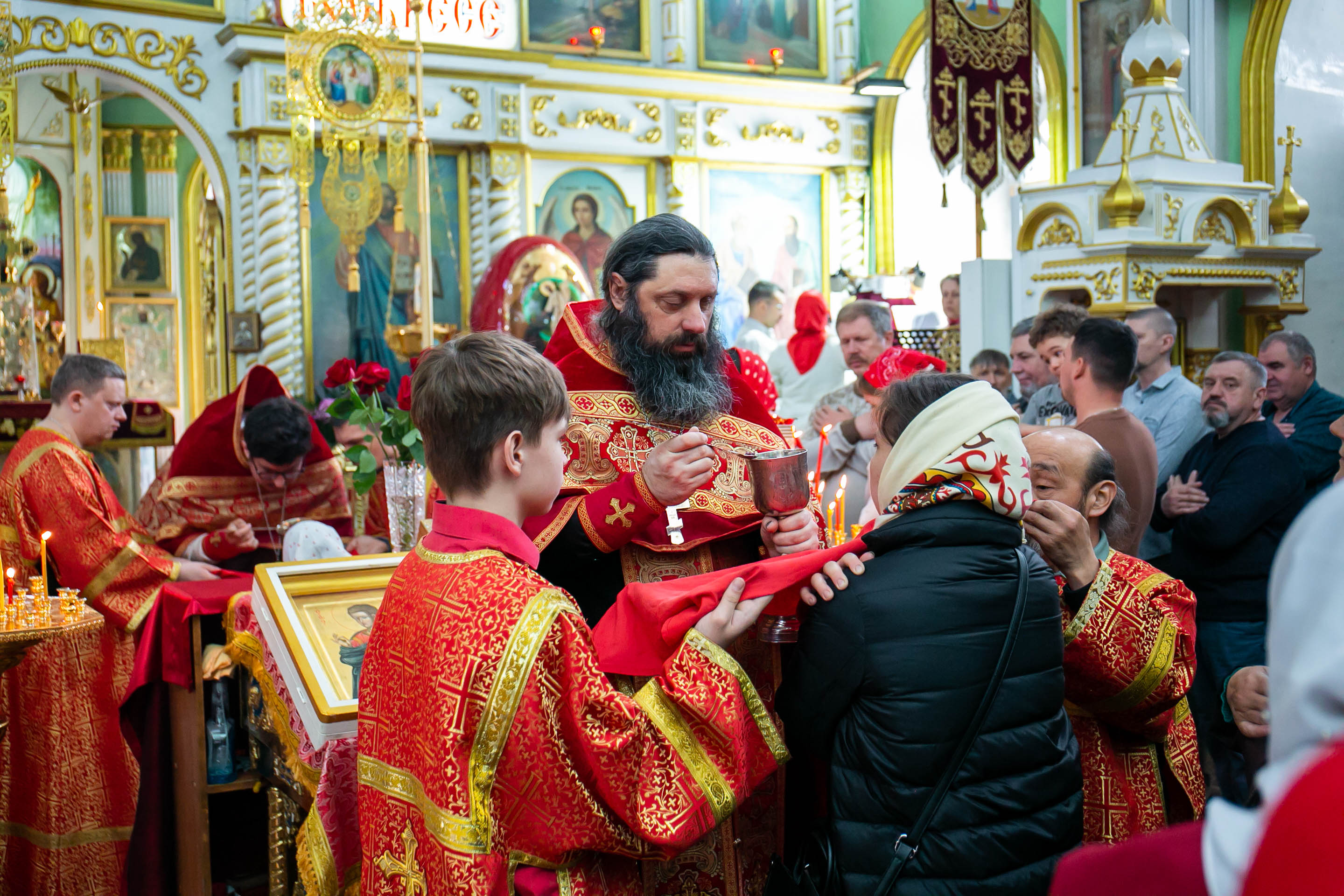 Литургия совершилась по уставу первого дня Пасхи. Были пропеты антифоны праздника Пасхи.