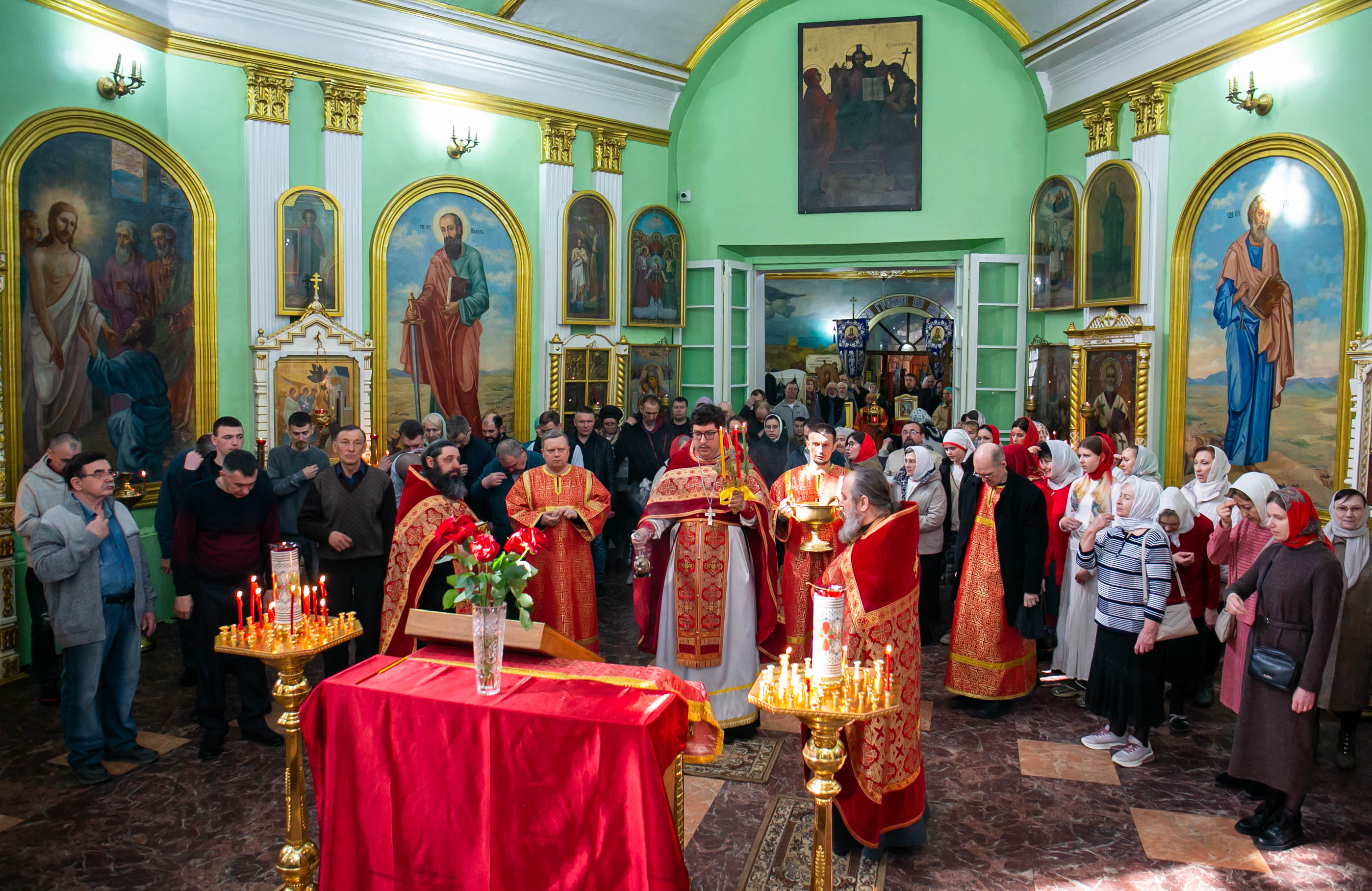 По прочтении Евангельского зачала, на сугубой ектеньи были вознесены молитвословия о даровании Единства Церкви Христовой и об умирении церковных раздоров. По сугубой ектенье были прочитаны молитвы об исцелении страждущих от пагубных зависимостей: алкоголизма,наркомании и лудомании. В завершении богослужения протоиерей Сергий Снопков обратился к молящимся со словом проповеди.