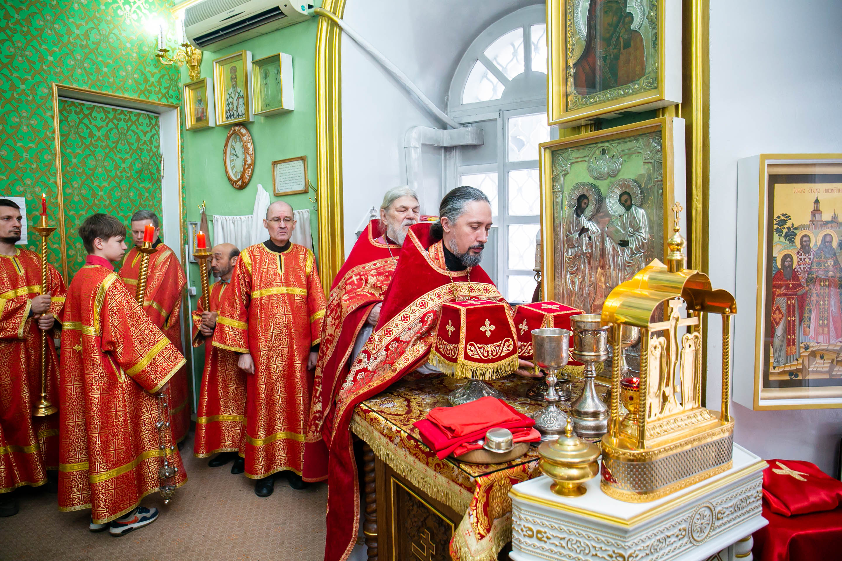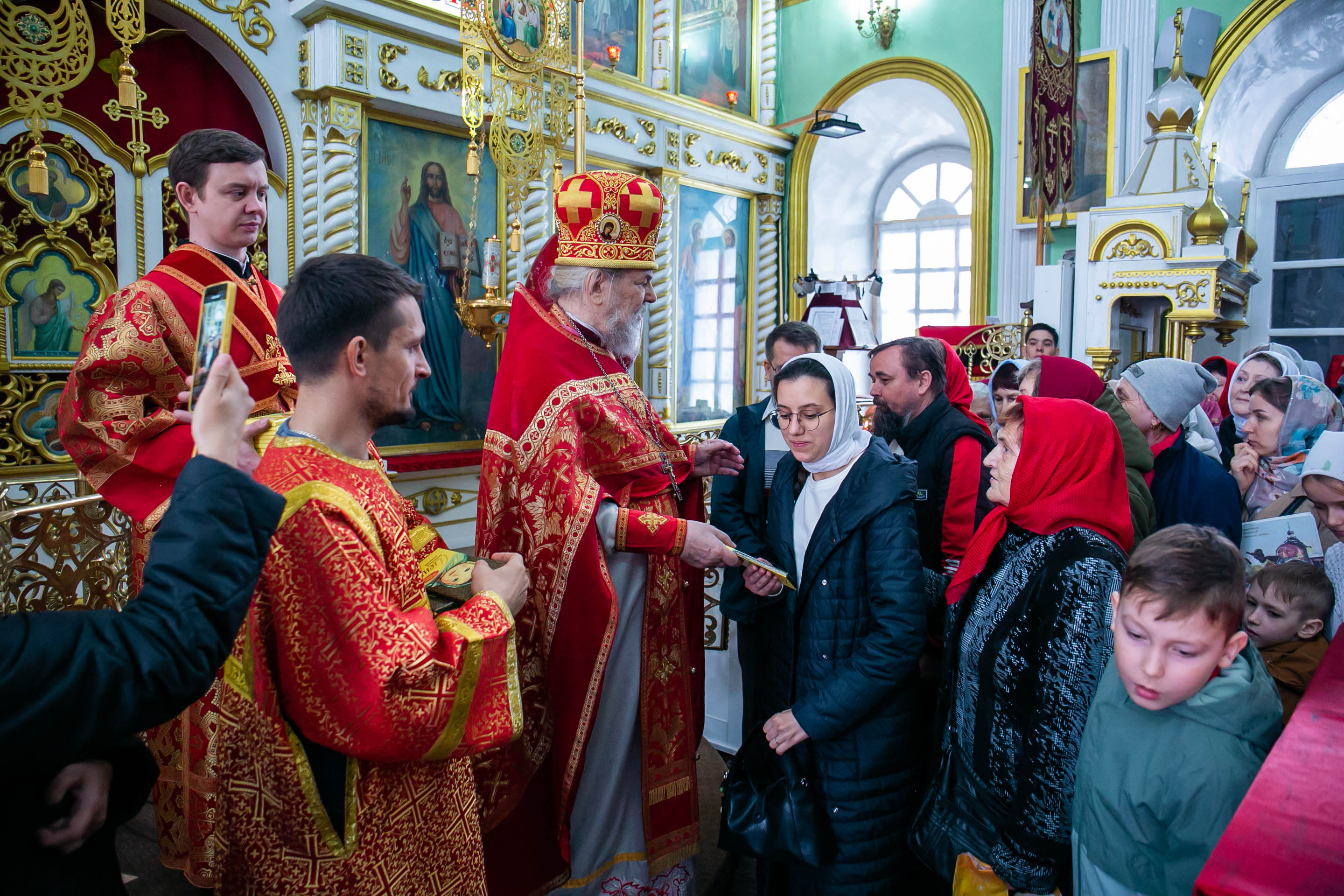 По прочтении Евангельского зачала, на сугубой ектеньи были вознесены молитвословия о даровании Единства Церкви Христовой и об умирении церковных раздоров. По сугубой ектенье были прочитаны молитвы об исцелении страждущих от пагубных зависимостей: алкоголизма,наркомании и лудомании. В завершении богослужения протоиерей Сергий Снопков обратился к молящимся со словом проповеди.