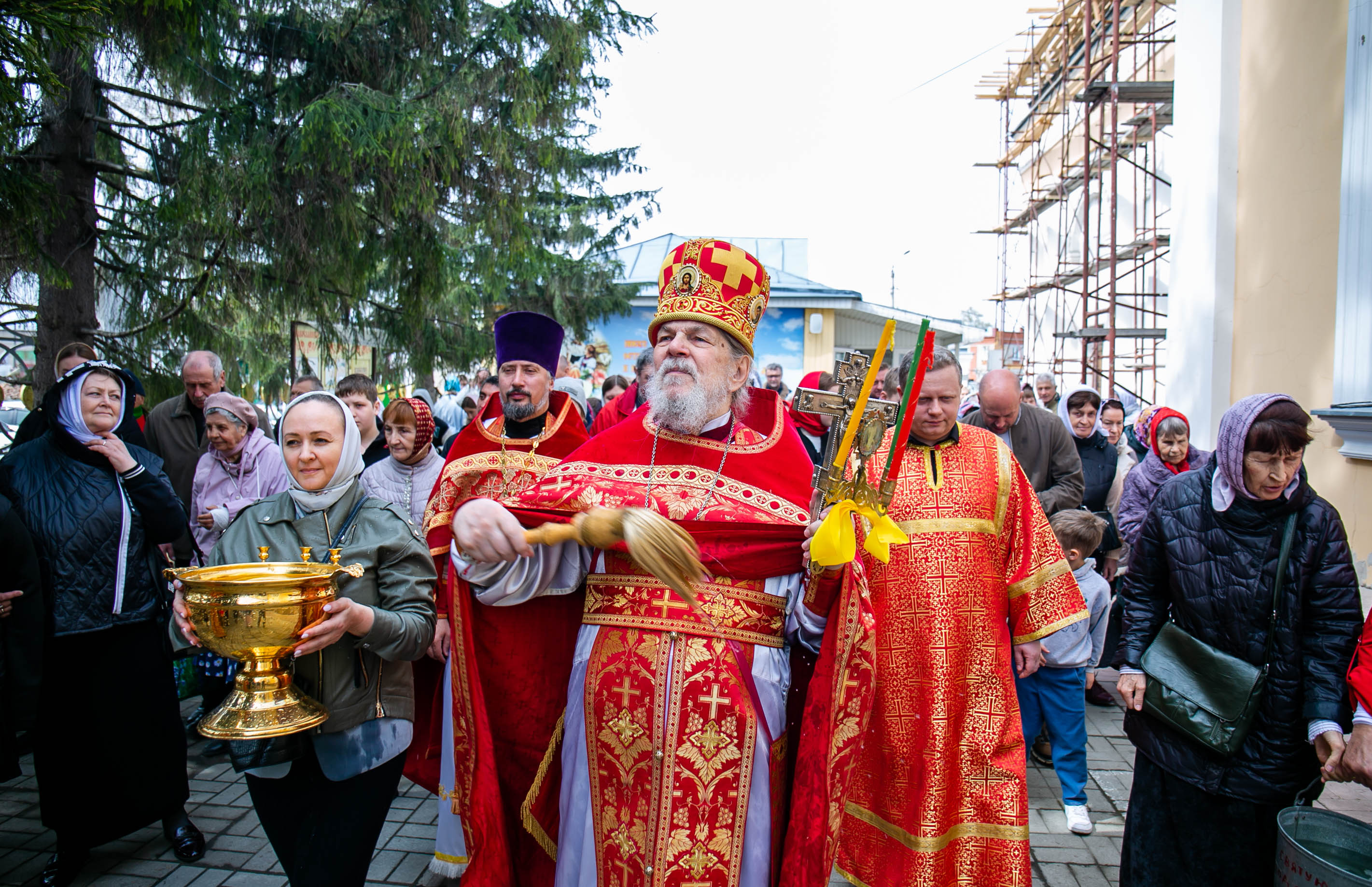 По окончании Литургии состоялся Пасхальный Крестный ход вокруг Собора.