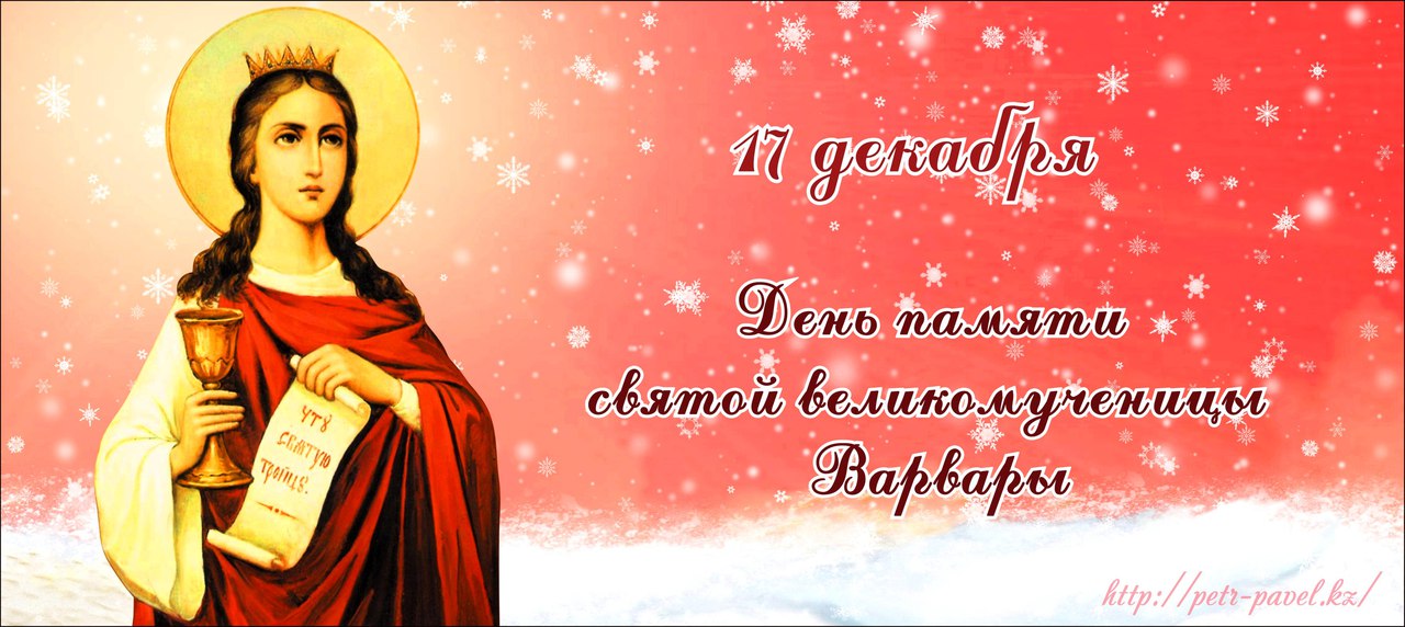 Святая великомученица Варвара родилась в г.Илиополе (нынешней Сирии) при императоре Максимине (305-311 гг.) в знатной языческой семье. Отец Варвары Диоскор, рано лишившись своей супруги, был страстно привязан к своей дочери и берег, как зеницу ока, ибо, кроме неё не было у него больше детей. Когда Варвара повзрослела, лицо ее стало настолько прекрасным, что во всей той местности не было девицы, равной ей по красоте. Желая скрыть Варвару от простых и незнатных людей, которые, как он полагал, недостойны любоваться ею, отец построил для дочери специальный замок, откуда она выходила только с его разрешения.