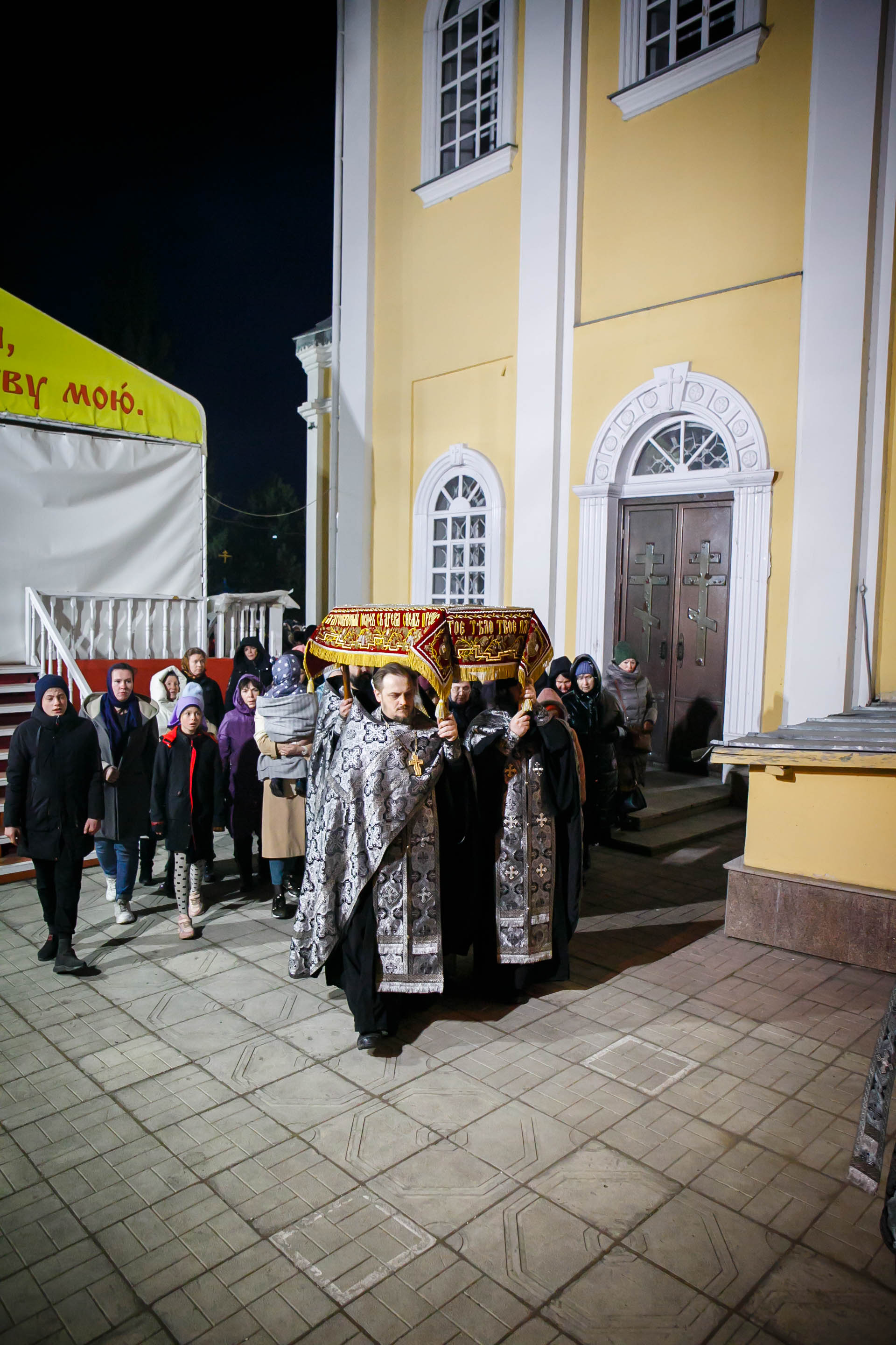 Богослужение закончилось уже поздно вечером, не сразу опустел храм — перед уходом каждый из многочисленных прихожан с благоговением приложился к святому изображению погребённого Господа, с благодарностью и надеждой воздавая хвалу Его долготерпению и безвинным страданиям за грехи людские — страданиям, проложившим для нас дорогу в Царствие Небесное.