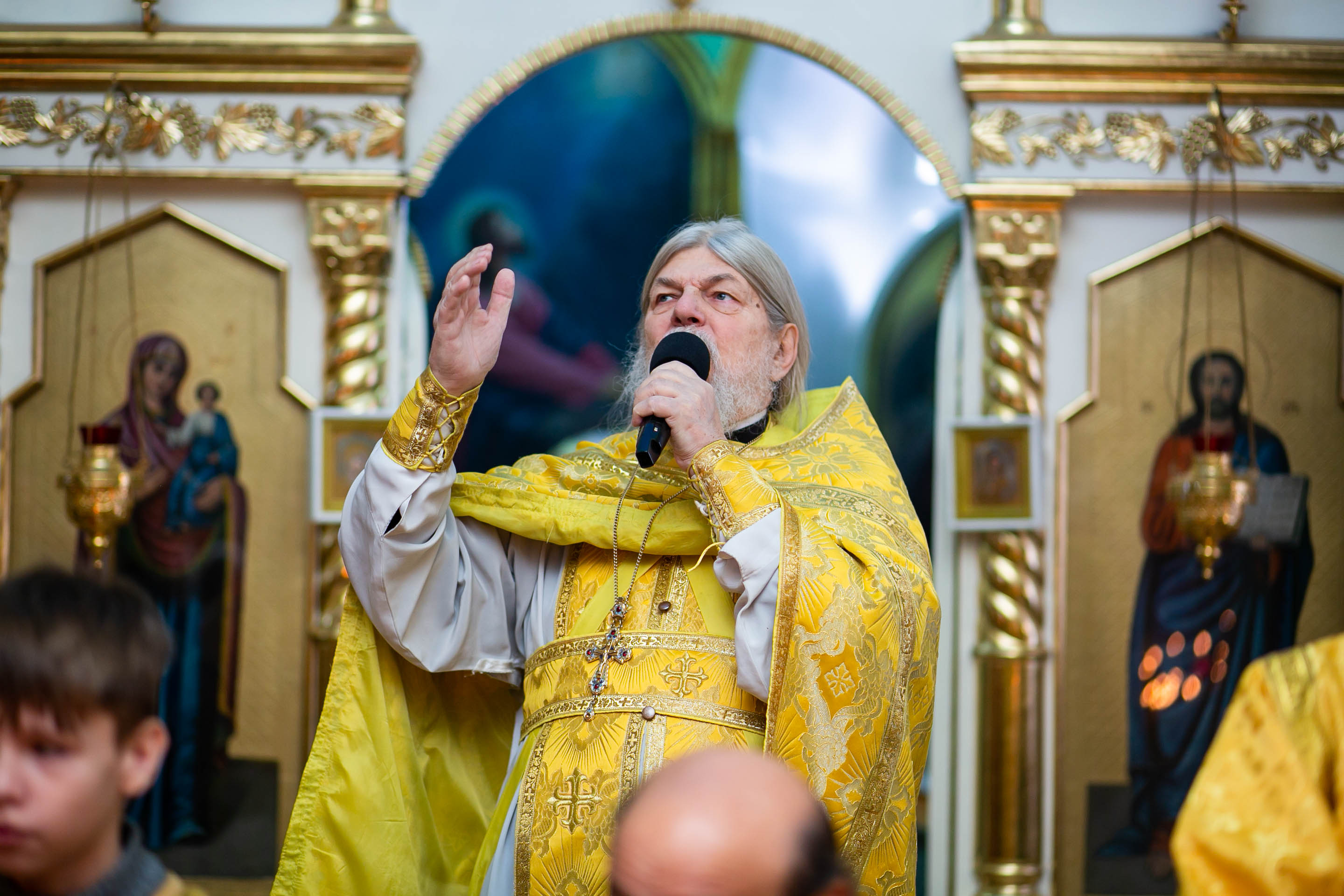 В завершении богослужения настоятель Собора протоиерей Сергий Снопков обратился к молящимся со словами проповеди.