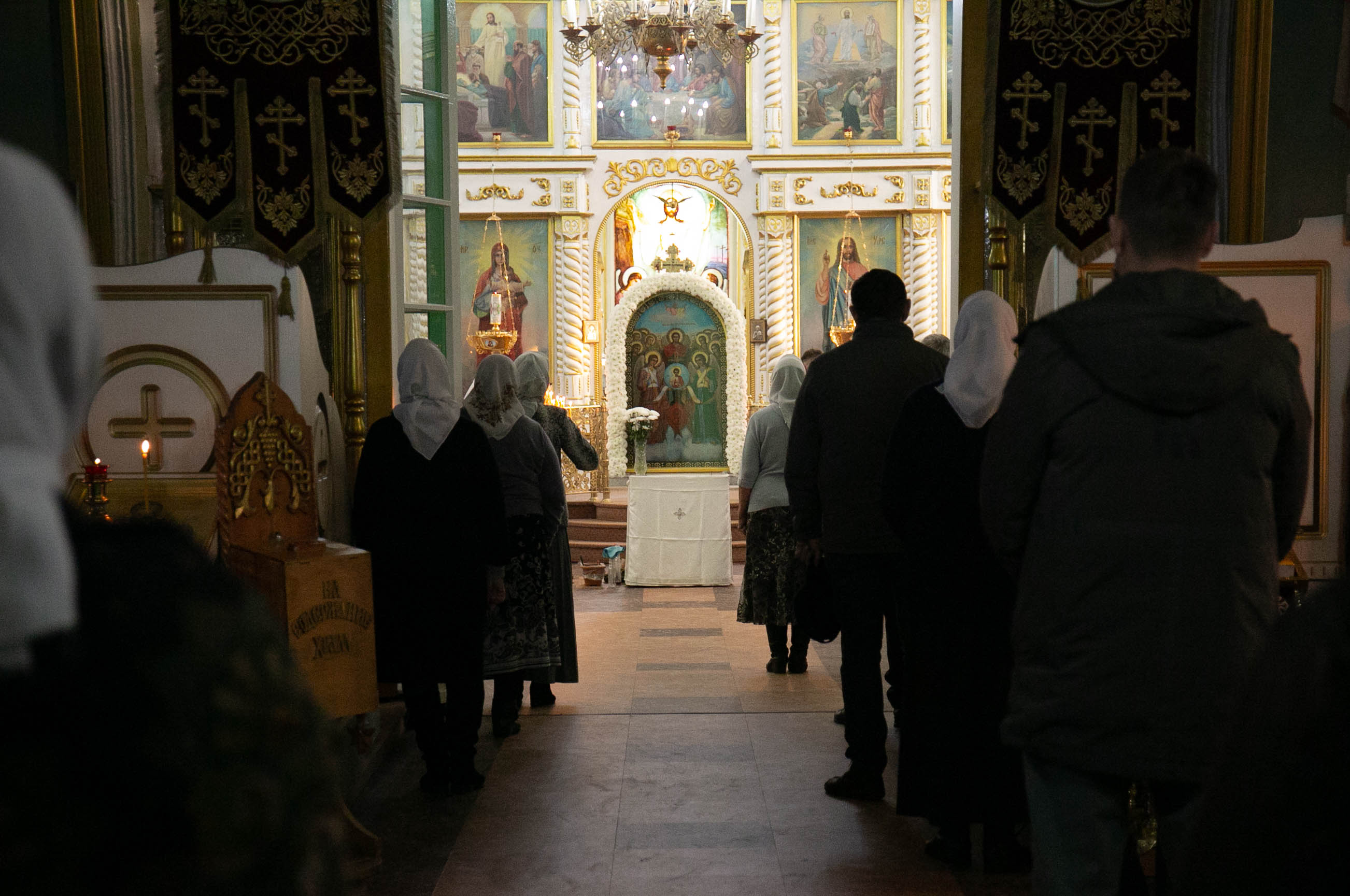 Накануне вечером, 20 ноября, в храме было совершено Всенощное бдение с чтением акафиста Архангелу Божию Михаилу. Под сводом Собора голоса духовенства, певчих и прихожан слились в согласный хор и вознесли славу Архистратигу Михаилу и прочим Небесным Силам Бесплотным: «Радуйся, Михаиле, великий Архистратиже, со всеми Небесными силами».