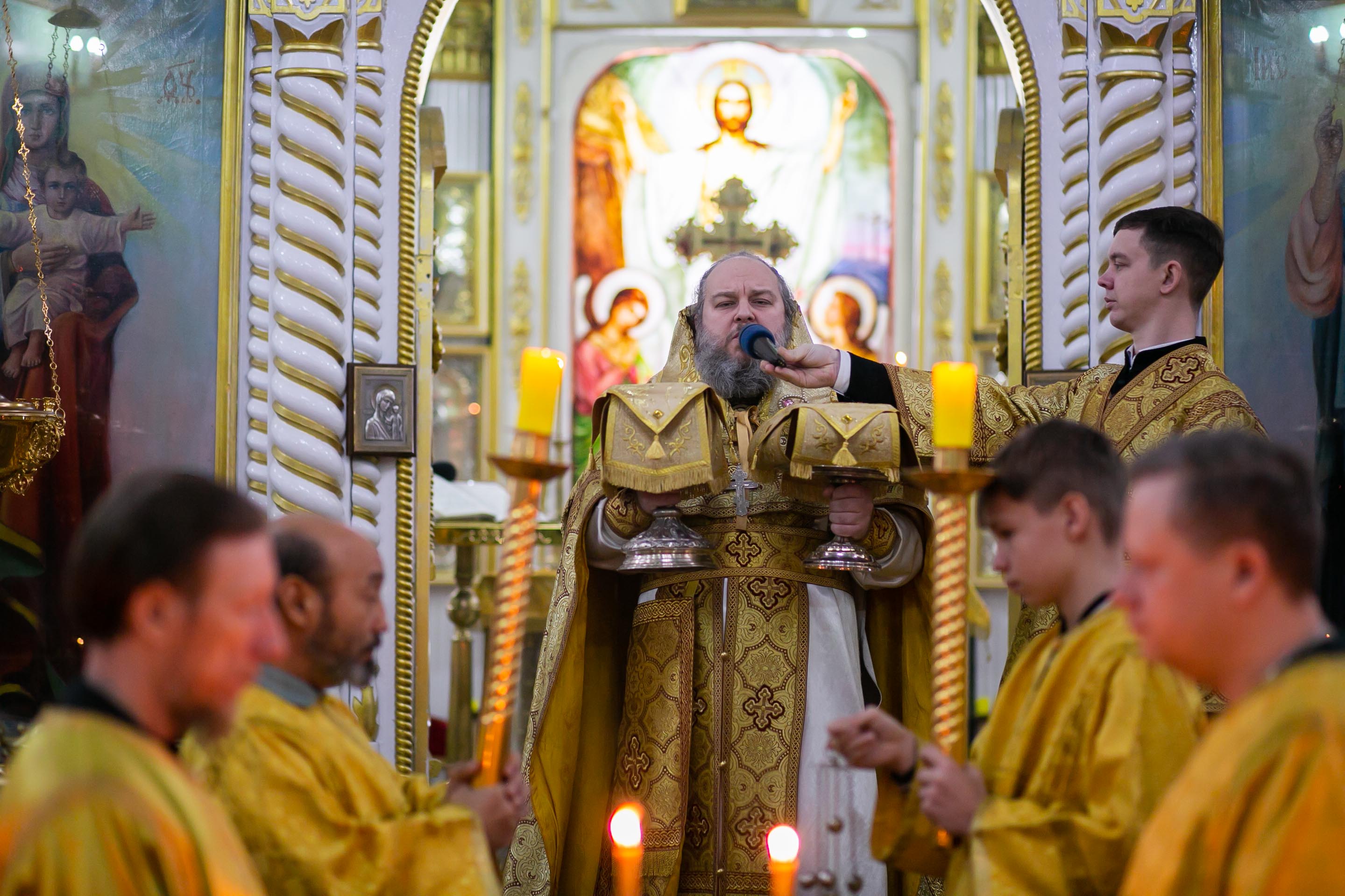 В завершении богослужения настоятель Собора протоиерей Сергий Снопков обратился к молящимся со словами проповеди.