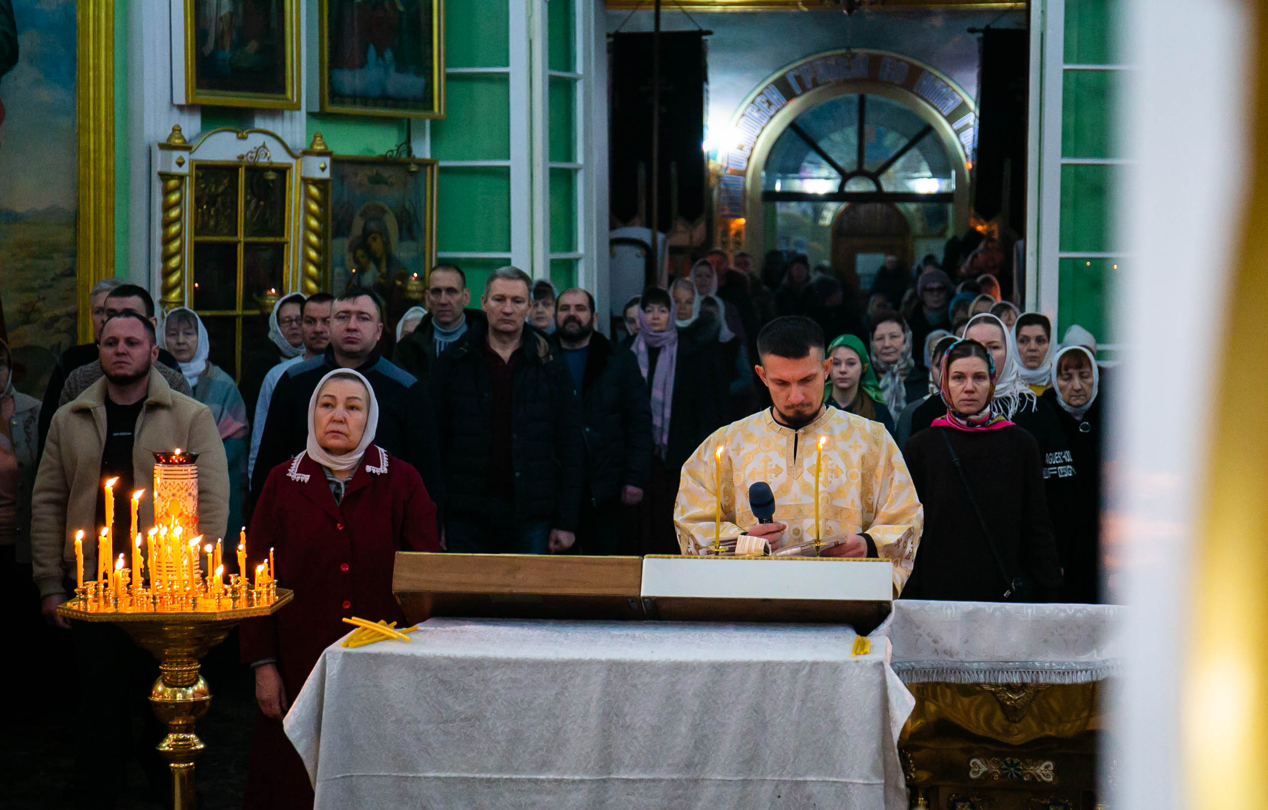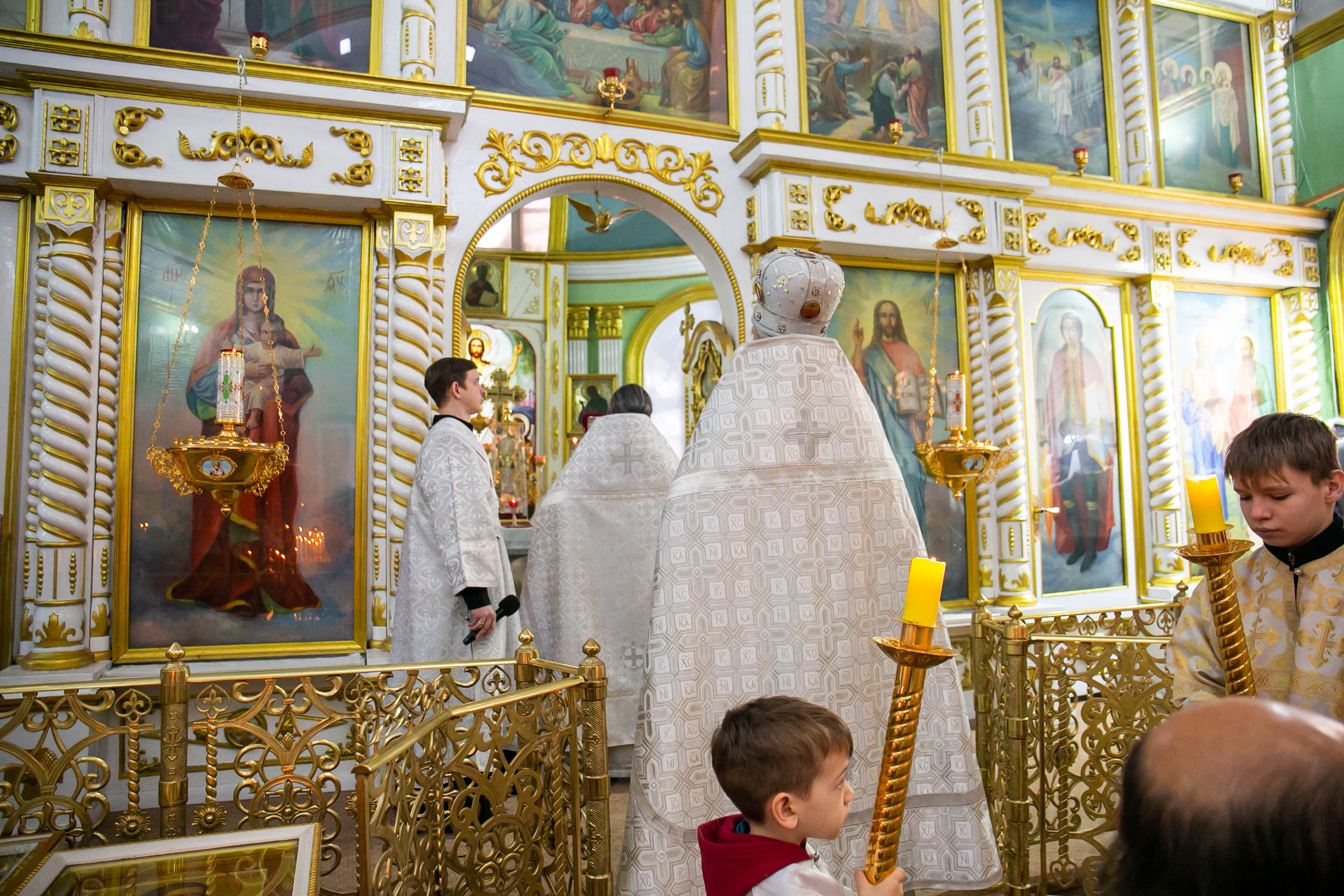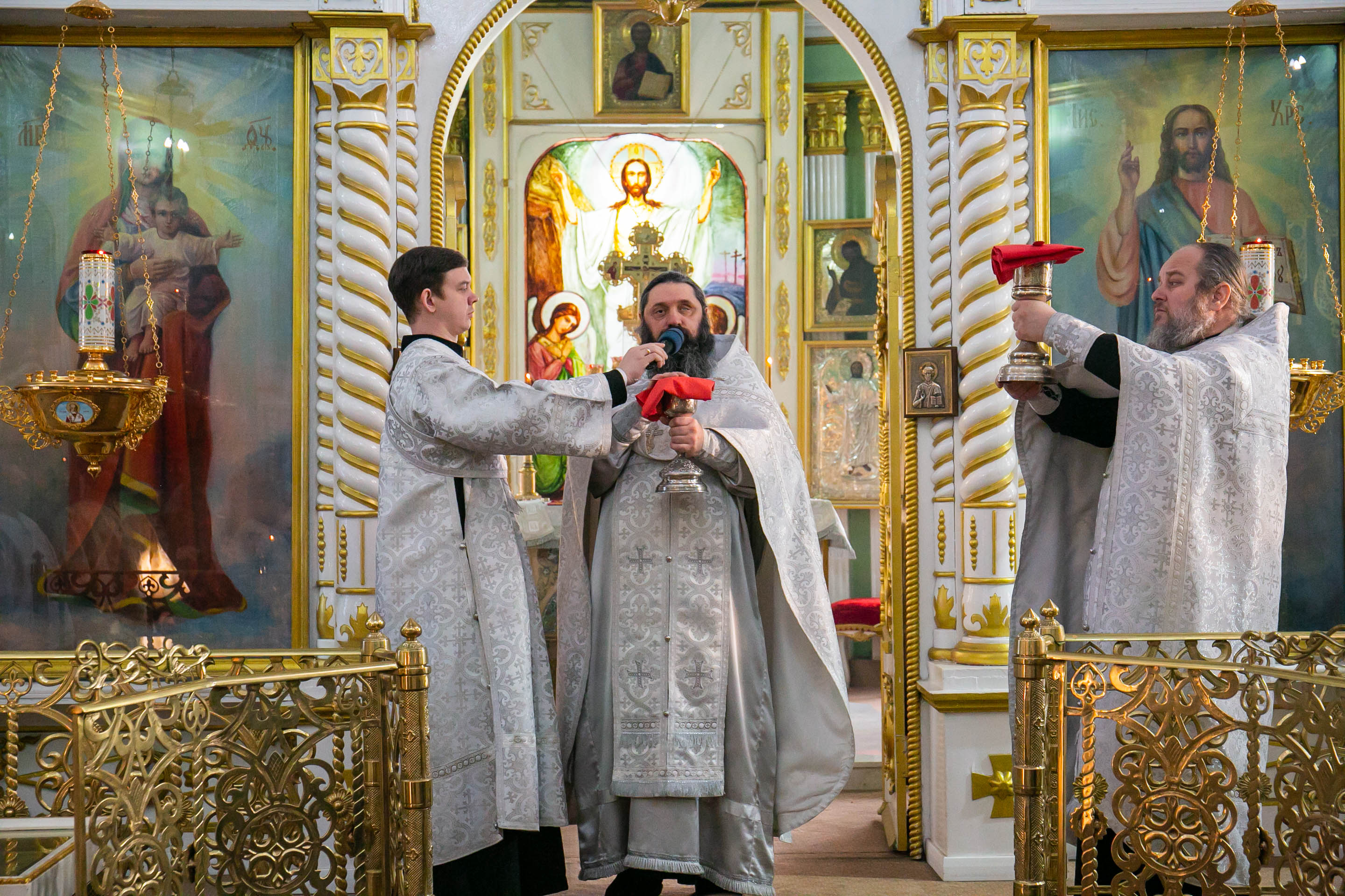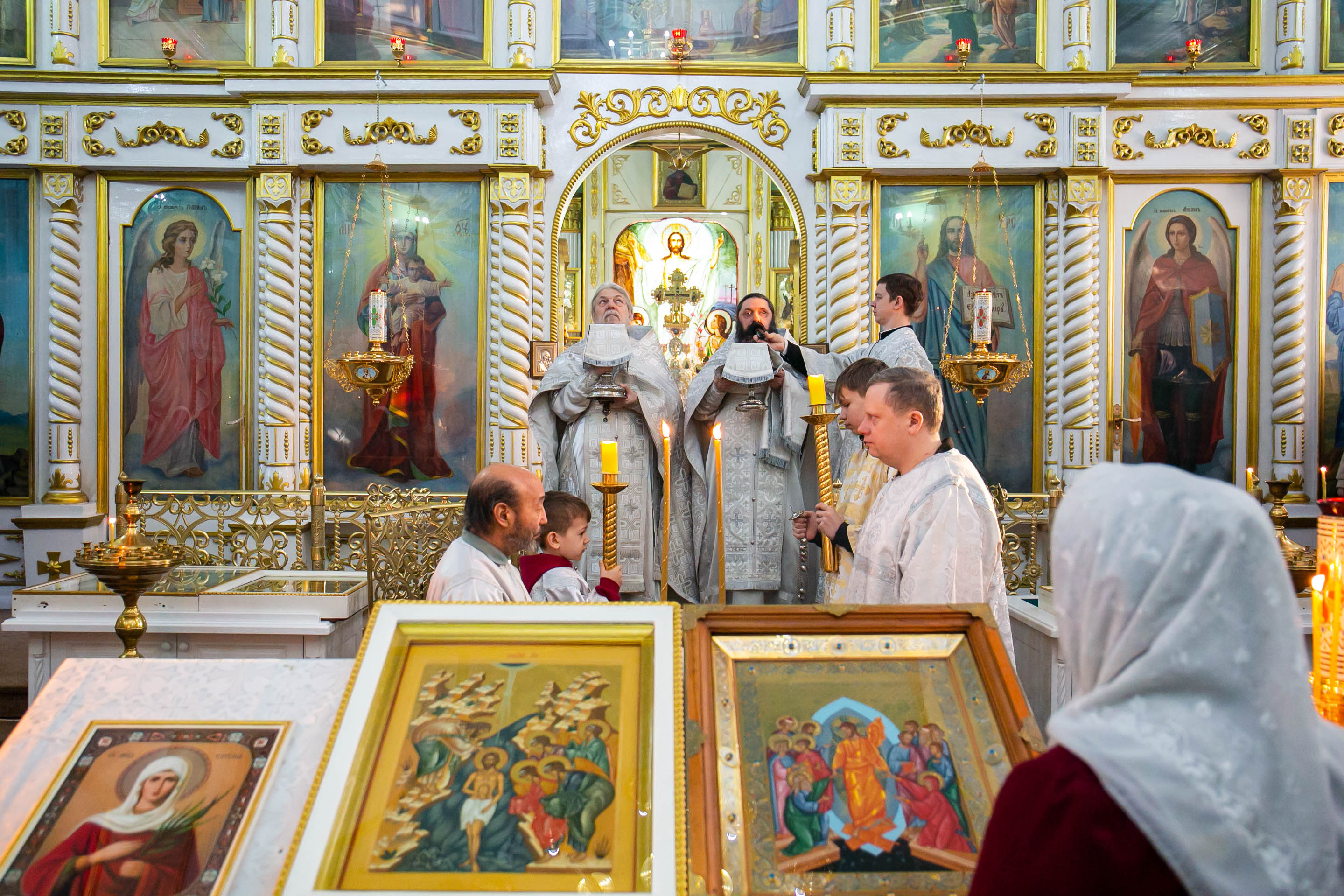 По прочтении Евангельского зачала, на сугубой ектении были вознесены молитвословия о даровании Единства Церкви Христовой и об умирении церковных раздоров. По сугубой ектении были прочитаны молитвы об исцелении страждущих от пагубных зависимостей: алкоголизма, наркомании и лудомании. По окончании богослужения настоятель Собора Сергий Снопков обратился к прихожанам со словами проповеди.